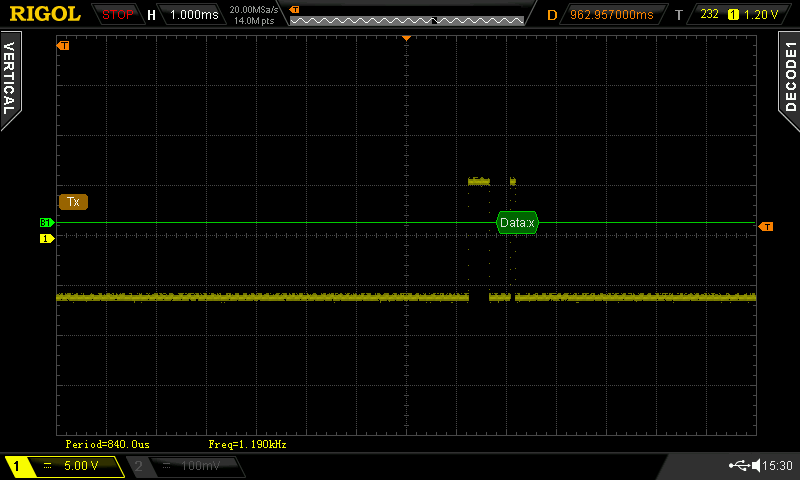dpetko Posted October 15, 2015 Posted October 15, 2015 (edited) недавно попытался освоить USR-TCP232-24 купленный летом. Выяснил интересные детали. Устройство работает корректно при соединении по 232 интерфейсу с конвертером usb-to-232, т.е. при соединении двух пк передача данных из терминала в терминал идет без искажений, НО конвертор usb-to-232 с модемом работает без замечаний а USR-TCP232-2 ни в какую не желает. Посмотрел сигнал осциллографом и увидел следующие картинки - первая USR-TCP232-24 - вторая для usb-to-232 Edited October 15, 2015 by dpetko Вставить ник Quote