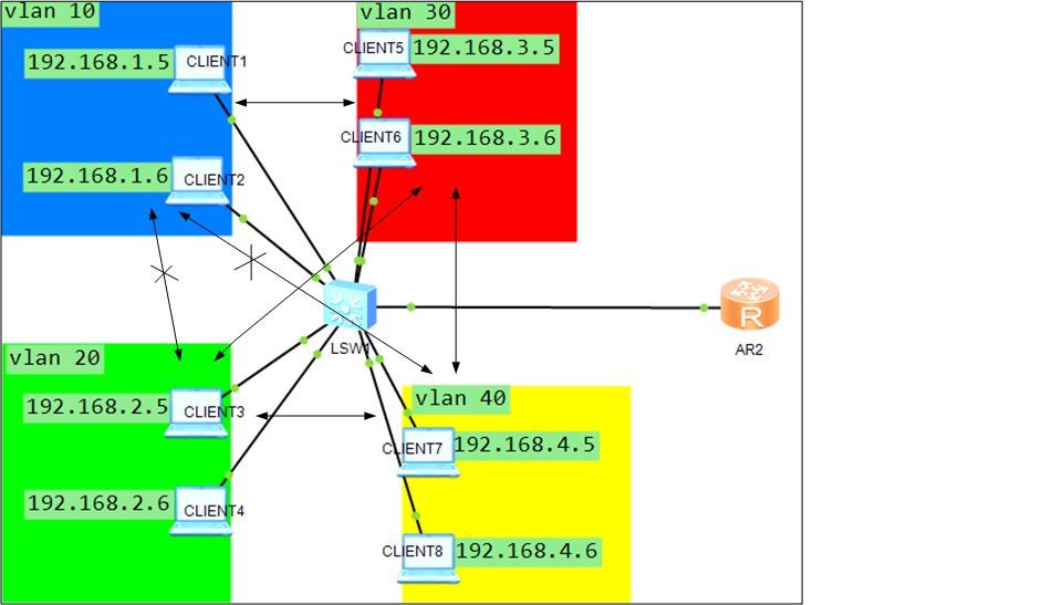 tihon85 Posted January 27, 2015 Author Posted January 27, 2015 с ip адресами в сабах тоже не работает. Значит первоначально настройки не те. С traffic-policy столкнулся впервые, да и вообще с huawei. Попробую объяснить сначала, подскажите, пожалуста, как сконфигурировать и где я не прав. Дана сеть, в сети коммутатор и маршрутизатор, даны четыре вилана - 10,20,30,40. 30 вилан предназначен для подключения сервера.Необходимо сконфигурировать так, чтобы трафик был между 30 виланом и остальными, но между остальными виланами 10,20 и 40 трафика не было(проще говоря, все видят сервер, но не видят друг друга).Важно - маршрутизация трафика в маршрутизаторе. С коммутатором все понятно- создаем виланы, конфигурируем порты,вешаем на них виланы. Маршрутизатор-конфигурируем подинтерфейсы: [Huawei-GigabitEthernet0/0/1.1]dot1q termination vid 10 [Huawei-GigabitEthernet0/0/1.1]ip address 192.168.1.1 24 и так четыре подинтерфейса,под каждый вилан создаем ACL: acl number 3005 rule 5 permit ip source any destination 192.168.3.0 0.0.0.255 // разрешили трафик между всеми и сетью сервера далее запретил трафик между остальными сетями: rule 10 deny ip source 192.168.1.0 0.0.0.255 destination 192.168.2.0 0.0.0.255 rule 15 deny ip source 192.168.1.0 0.0.0.255 destination 192.168.4.0 0.0.0.255 rule 20 deny ip source 192.168.2.0 0.0.0.255 destination 192.168.4.0 0.0.0.255 а как действовать дальше не пойму. Вставить ник Quote