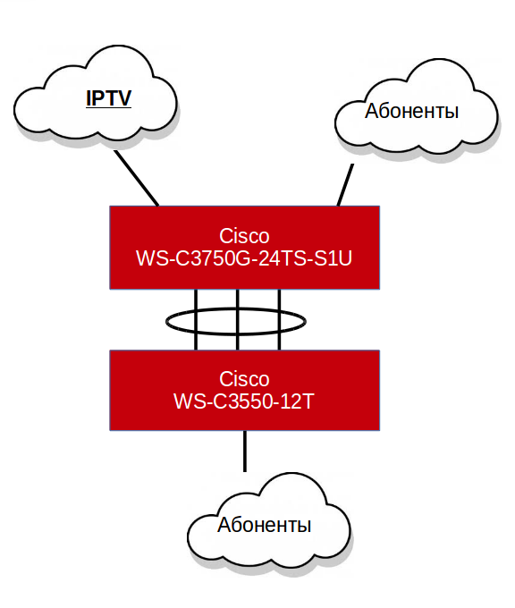 Pedalik Posted January 21, 2015 Posted January 21, 2015 Всем привет! Прошу вашей помощи в понимании некоторых механизмов работы QOS на коммутаторах Cisco. Схему прилагаю. Есть сеть, в ядре которой стоят Cisco 3750 и Cisco 3550. Подключены между собой через Etherchannel из трех гигабитных портов. (Самое узкое место). Со всех сторон в них подключены коммутаторы преимущественно Длинки, но это не важно. В один из портов 3750 прилетает около 300 мбит IPTV в виде мультикаста. Задача: Установить IPTV трафику абсолютный приоритет на выходе с коммутатора. С классификацией трафика разобрался без проблем. По IP адресам задаю DSCP = af41, по умолчанию мапится в COS = 4. Пакеты на доступ прилетают с измененной меткой, длинки ей верят, и обрабатывают согласно настройкам по умолчанию очередь, в которую попадает IPTV Траффик с абсолютным приоритетом. Проверял на 10 Мбитном порту с включенным торрентом, согласно iptvanalyzer ни один пакетик не потерялся. Проблемы начинаются ближе к вечеру, когда загрузка на портах, входящих в etherchannel приближается к 70%. В статистике порта interface Po1 "Total output drops" растут с огромной скоростью, кртинка кубит и рассыпается. Выключаю mls qos, ситуация значительно улучшается, но от всплесков трафика никуда не деться.. Пытался курить и официальные документы от Cisco, и it-admin.org, везде красиво расписано как распределять в процентных соотношениях память между очередями, шейпить траффик, соотнести cos и dscp с очередями, изменять значения Threshold. Но как это всё соотнести с реальными ситуациями - я никак не пойму. Есть простая задача: Не обрабатывать никакие другие пакеты, пока пакеты с COS=4 есть в очереди. Подскажите у кого есть опыт как это реализовать, или хотя бы направьте мои мылси в нужное русло :) И ещё вопрос: Есть ли какие-то особенности работы QOS с etherchannel? Вставить ник Quote