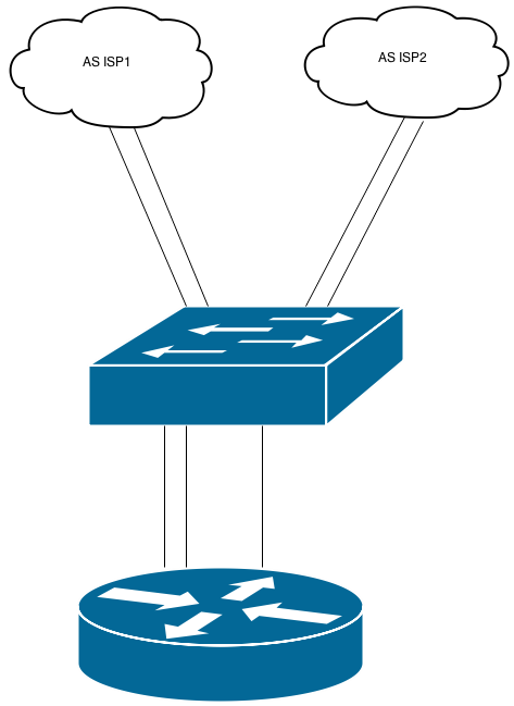 hpswgprk Posted February 10, 2015 Posted February 10, 2015 Здравствуйте, помогите, пожалуйста, со схемой балансировки исходящего трафика. К ISP 1 подключаемся через два VLAN. Multihop EBGP. К ISP 2 обычное EBGP соединение. От обоих получаем full view. Для простоты будем считать, что community не поддерживаются нашими аплинками. inb4 Купить ещё два микротика и балансировать между ними. Купить циску. Вставить ник Quote