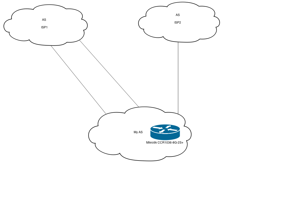 hpswgprk Posted February 10, 2015 Author Posted February 10, 2015 (edited) Верхний провайдер так сделал. Сказал "так надо". Редактирование из-за ограничения на количество постов. Возможно не понимаю, не спорю. Попытаюсь объяснить подробнее. К этому провайдеру (ISP1) подключены так как подключены. Балансировка настроена не была. Получаем трафик мы с двух вланов. В качестве же запросного используется один, хотя вышестоящий провайдер балансирует на два. Нужно настроить так, чтобы использовались оба канала в качестве запросных. Как это сделать в микротике я не очень понимаю. Потому и прошу примерную схему и алгоритм, чтобы дальше копать их "Документацию". Редактирование 2. Всего 2 пира и 2 BGP сессии. Меня интересует настройка пира ISP1 на картинке. В настройках сессии с ним включен Multihop. Прямого соединения с ними у нас нет, потому созданы два влана для подключения к двум их разным коммутаторам. С нашей стороны были созданы два этих влана, согласно рекомендациям ISP1. Остальное сделал наш вышестоящий провайдер. Сейчас ситуация такая. Трафик от них мы получаем примерно поровну. А отправляем совсем чуть-чуть, и то через один влан. Сейчас же, с подключением ISP2, исходящего трафика через ISP1 вообще почти нет. Edited February 10, 2015 by hpswgprk Вставить ник Quote