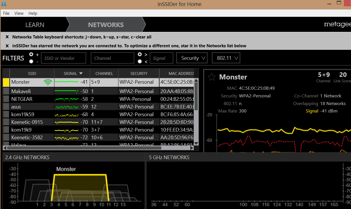 ivank Posted March 10, 2015 Posted March 10, 2015 Всем привет. Ситуация такая, по кабелю интернет 100мбит, по wifi скачет от 5 до 20мбит Смотрю пинг в cmd, скачет от 1 до 500мс Прикладываю скриншот из inssider, сделанный утром. Живу в многоквартирном доме, утром замер скорости через speedtest показывает от 15 до 30мбс (по wifi), под вечер 5-10мбс. Подозреваю, что проблема возникает из-за соседских роутеров, как с этим бороться? Сменил 3 роутера, ситуация аналогичная, сейчас mikrotik rb951g-2hnd, возможно как-то настроить? Вставить ник Quote