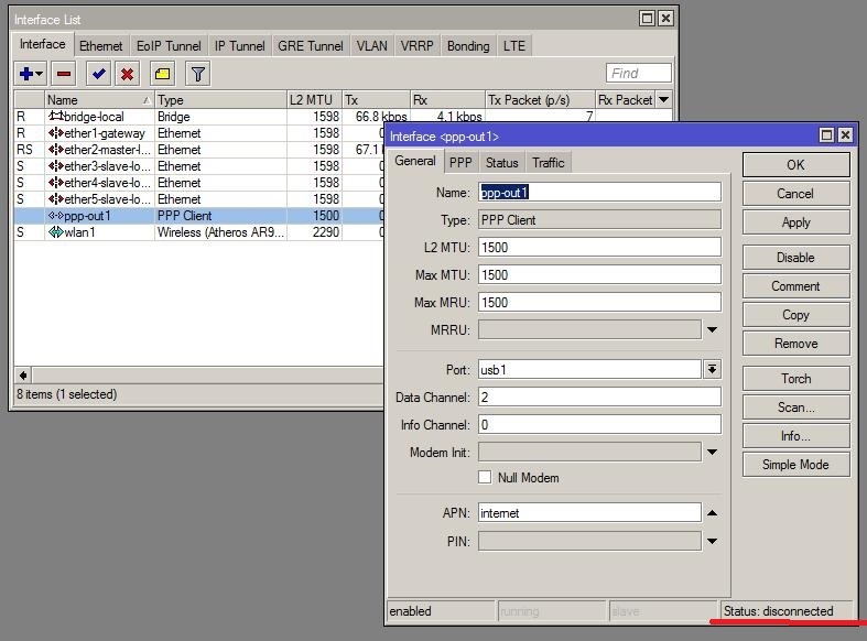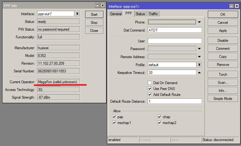 Djeck01 Posted July 10, 2015 Posted July 10, 2015 ]Помогите, пожалуйста новичку! Подключение 3G-модема Е352 к роутеру RB951Ui 2HnD Оператор -Мегафон. Делаю все по образцу (смотри сканы). ppp-out1 не запускается. В чем причина. Вставить ник Quote