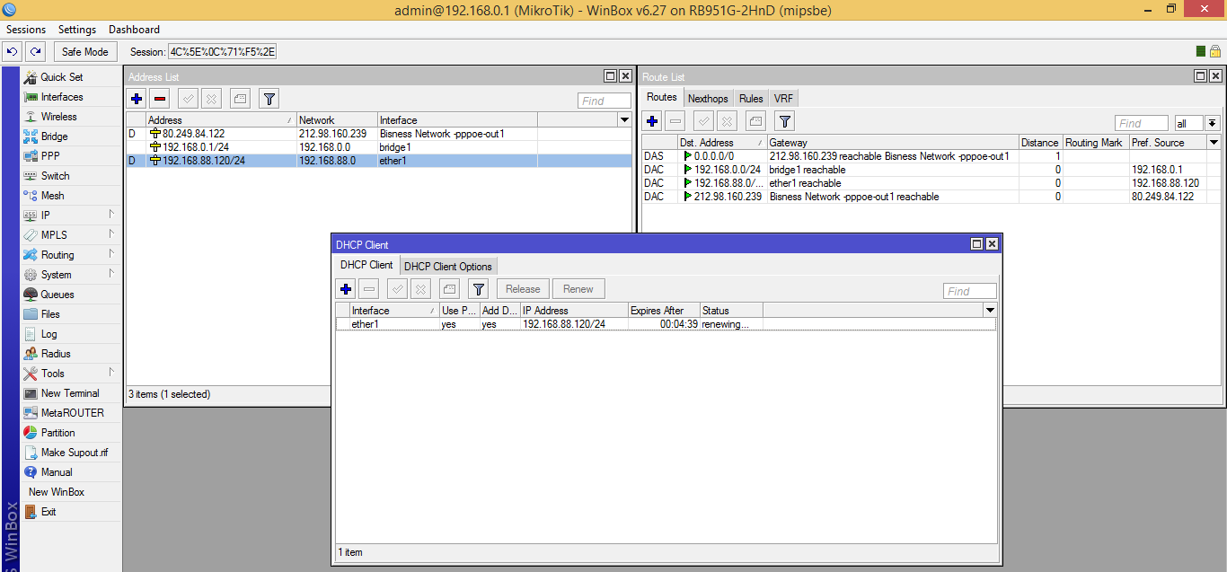 Saiko Posted August 31, 2015 Вот Вам и ответ: интернет вы получаете по pppoe, а значит DHCP client можно отключить/удалить. Share this post Link to post Share on other sites More sharing options...
