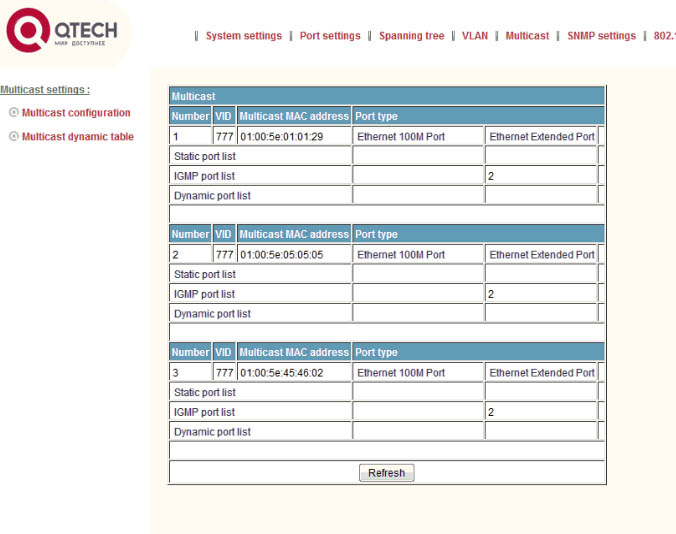 zero00 Posted September 23, 2015 (edited) Я так понимаю, что есть какая-то проблема с multicast?! Что не так делается? --------------------------------------- show VLAN information VLAN ID : 1 VLAN status : static VLAN member : e0/1-e2/1. Static tagged ports : e1/1. Static untagged Ports : e0/1-e0/24,e2/1. Dynamic tagged ports : show VLAN information VLAN ID : 777 VLAN status : static VLAN member : e0/1-e0/23,e1/1-e2/1. Static tagged ports : e1/1. Static untagged Ports : e0/1-e0/23,e2/1. Dynamic tagged ports : Сначала раскидайте по портам на свиче вилан управления и вилан мультикаста. Не скажу про QTECH, а на D-Link проблем нет. Можно из неё ещё получить мультикаст? Можно Edited September 23, 2015 by zero00 Share this post Link to post Share on other sites More sharing options...