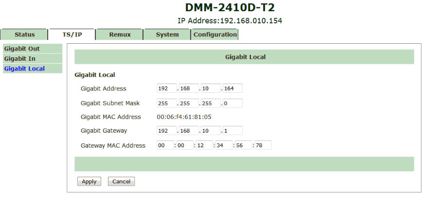 BSI_KSK Posted October 13, 2015 DMM-1300EC не имеет IP интерфейса для приема/передачи TS. Только для управления. Он формирует TS из видео и аудио с композитного или SDI. Забрать можно с ASI выхода. Например DMM-1400Р. Судя по описанию NVD-20, его не получится подружить с DMM-1300EC без посредника. Если только у вас не PBI DMM-1300EC-40. У этого устройства есть IPoTS выход. Share this post Link to post Share on other sites More sharing options...