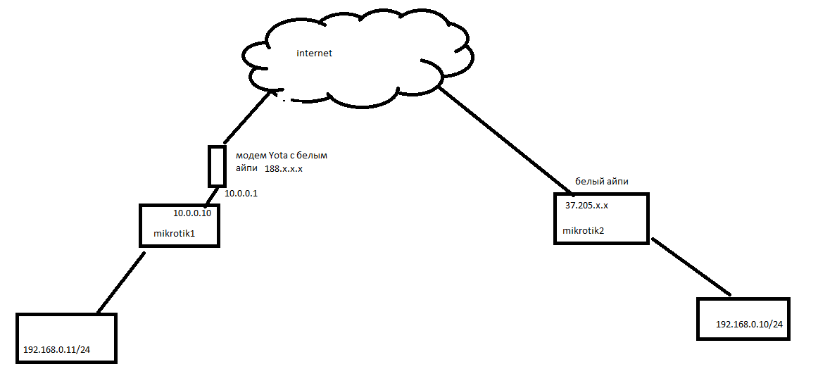lechat Posted September 19, 2015 здравствуйте, уважаемые участники форума. мне необходимо соединить две железки по L2 через интернет. Я наивно думал, что EoIP или L2TP меня спасёт, если будет хотя бы один белый айпишник у роутеров. купил модем yota, выпросил белый айпишник. И оказалось, что это не модем, а херня какая-то, у него встроенный неотключаемый NAT, и он просто пробрасывает порты за себя. я в печали. Техподдержка YOTA утверждает, что модем пробрасывает прям-таки всё-всё. Включая GRE. Помогите, пожалуйста, как настроить Л2 туннель между двумя маршрутизаторами RB951? очень хочется, чтобы ещё и шифрованный (IPSEC). Всё портит проклятый NAT в модеме YOTA. Может быть есть какой-либо вариант? никакой маршрутизации на соединяемых железках нет, ничего там настроить нельзя. Нужен именно Л2 мост, чтобы железки думали, что они в один свич воткнуты. помогите, пожалуйста. заранее спасибо! Share this post Link to post Share on other sites More sharing options...