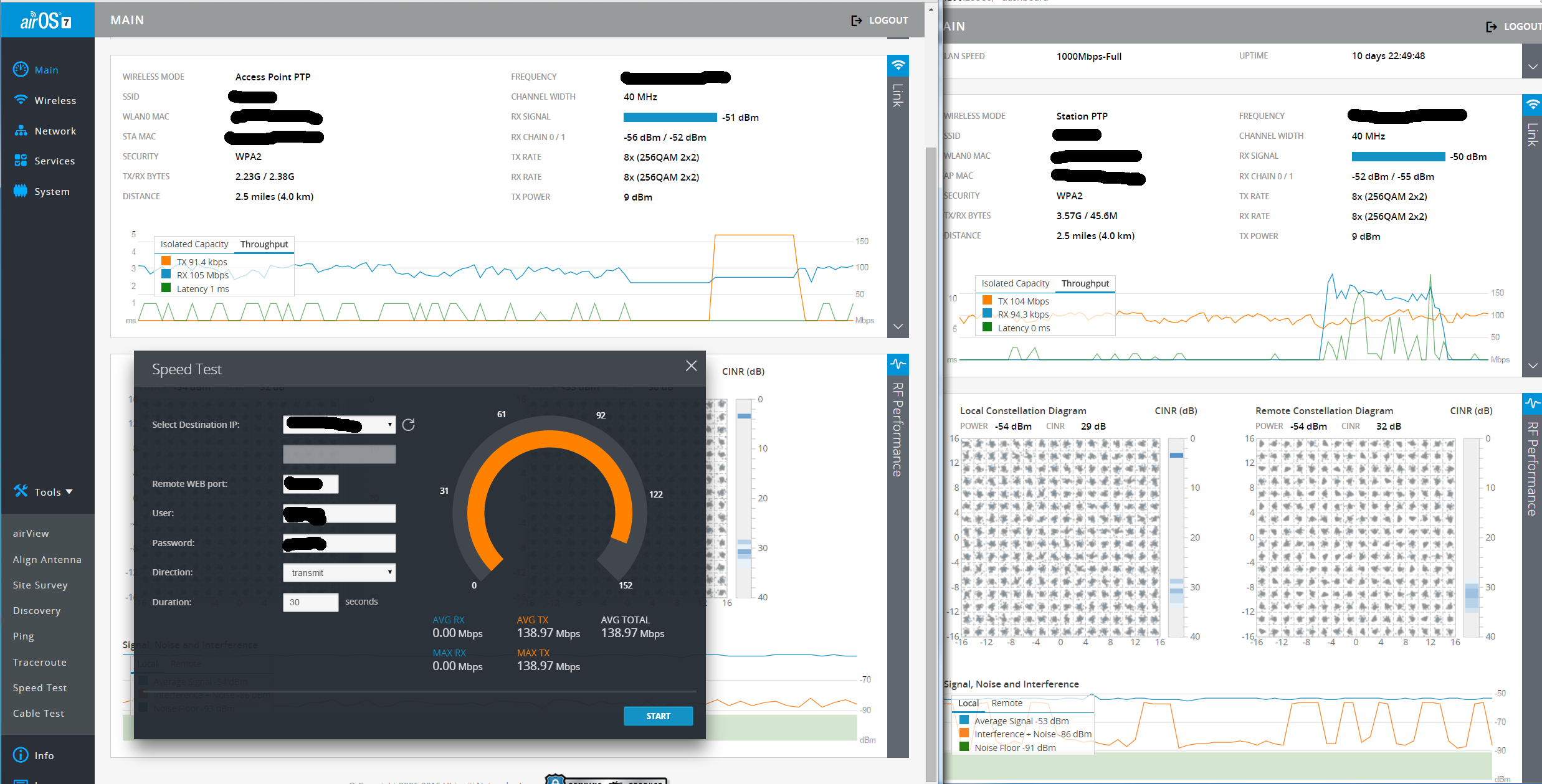 slv700 Posted October 7, 2015 Posted October 7, 2015 ' timestamp='1444208323' post='1184072']ох, как у вас пылает. а так как вы знатный любитель менять условия тестирования прямо в процессе тестирования, чтобы пылало еще больше, я выложил скроншот встроеного теста ubnt (в дополнение к реальному трафику, проходящему через канал). Условия тестирования известны для каждого типа теста и не меняются, я же требую от людей, проводящих тестирование и выкладывающие свои результаты, их соблюдения ( если они сами не знают и не соблюдают этих условий) , чтобы не получать искаженные результаты и делать ложные выводы. Ваш встроенный тест неадекватен, он мало о чем говорит , поскольку не учитывает потери пакетов в канале. А потери у вас в канале есть и их много, поскольку модуляция QAM256 5/6 поднята на CINR 31 dB ( local constellation diagram) и вы это увидете при встречном ( дуплексном ) трафике, когда загруженный upload канал будет терять ACK download трафика и этим деградировать download. CINR 32 dB в download также недостаточен , нужен как минимум 34dB+ 3-5 dB fage margin. Недостаток DL CINR также дает вам потери пакетов в download ( что вы не видите встроенным тестом). Протестите канал TCP дуплексным ( пусть несимметричным) трафиком и сразу все увидете сами. Вставить ник Quote