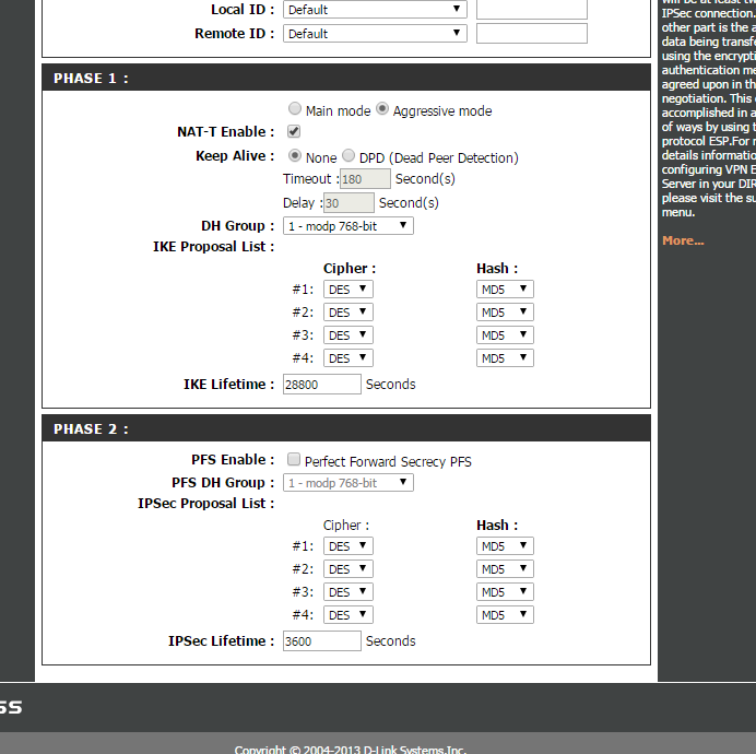 vinitan Posted October 9, 2015 Author Posted October 9, 2015 (edited) Либо не используйте IPSec, либо не используйте микротик, одно из двух. За эти деньги купили бы SRX240 и не парились Так он стоит около сотки а микротик этот 40 000 В общем я соединил длинк с микротиком этим. В настройках vpn нужно было отключить PHASE 2. Все остальные настройки в микротике стандартные которые и рекомендуют на сайтах посвященных настройке IPSec. В интернете очень много инфы по настройке айписека на микротике но нет инфы о настройке длинков серии dir и т.д. Edited October 9, 2015 by vinitan Вставить ник Quote