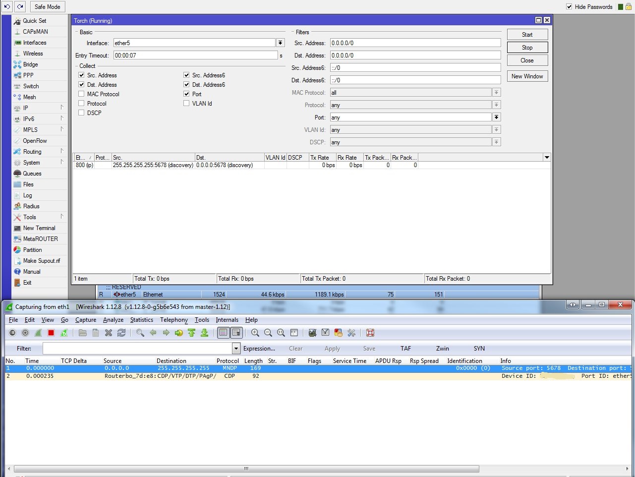 skysnet Posted November 5, 2015 Tools->Packet sniffer с фильтром для erhet5 и в файл на флешку. Состоит ли порт в бридже? Установлен ли мастер-порт для ether5? Вставить ник Quote Ответить с цитированием Share this post Link to post Share on other sites More sharing options...