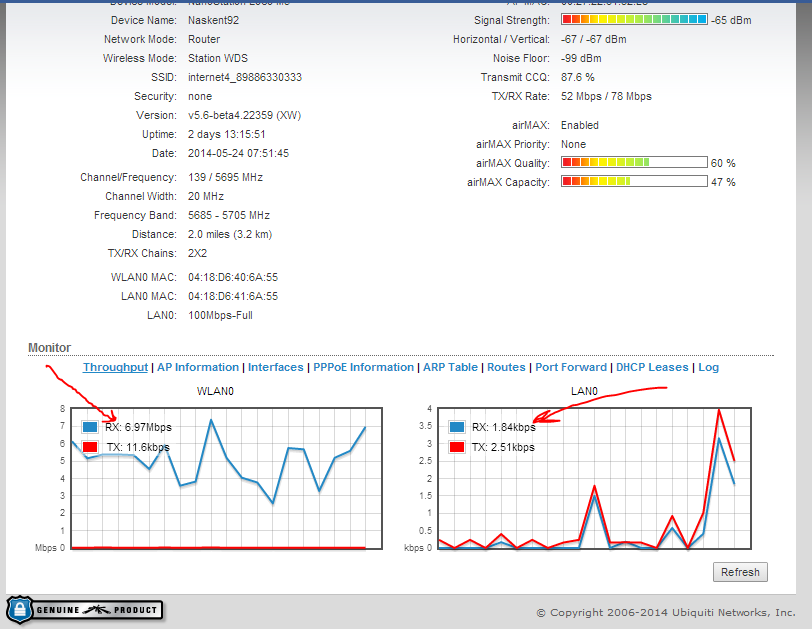 mojo Posted November 7, 2015 Author Posted November 7, 2015 А клиент при этом что-нить прокачивает? Какая прошивка? Похоже на режим энергосбережения. Был такой баг, в 5.5.х Прошивка 5.5.6 Заметил такой же глюк на многих клиентах (Rocket+Loco\Beam\Bridge) от рокета модуляции на высоте 300-240, а вот в обратку много у кого проваливается до 6.5 при аплоаде, при этом на рокете шумы -92. Вставить ник Quote