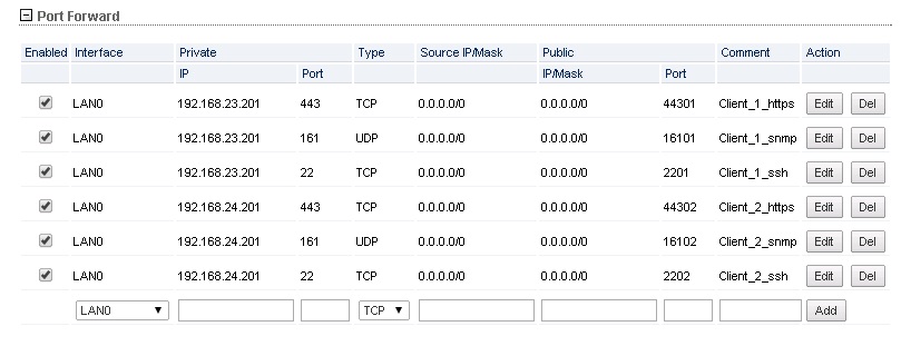 nikelangelo Posted November 13, 2015 Author Posted November 13, 2015 Если у вас на вкладке Services включена опция Secure Connection (HTTPS), то пробрасывать нужно 443 порт (или тот, который указан Secure Server Port). В приложении пример правил: Enable - включает правило Interface - в вашем случае "pppoe..." Private IP - в вашем случае "192.168.10.20" Private port - 443/80/любой другой, указанный на вкладке Services бима с адресом 192.168.10.20 Type - TCP (для HTTP/HTTPS) Source IP/Mask - 0.0.0.0/0 Public IP/Mask - 0.0.0.0/0 Public port - любой свободный, 20ый лучше не трогайте. не побрасывается перепробовал все возможные варианты, и на 443 порт тоже.. может быть в чем то другом проблема.паблик айпи тоже ставил pppoe/32 Вставить ник Quote