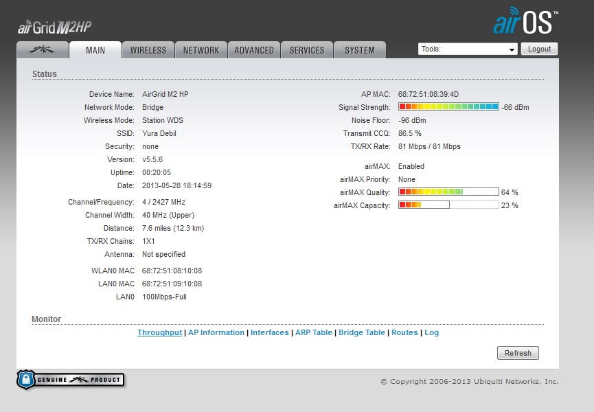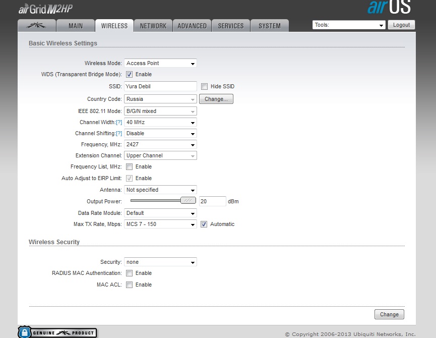 WAR231 Posted December 11, 2015 (edited) Здравствуйте, сделал wi-fi мост с помощью 2-х AirGrid M2 HP, мост уже существует с июля этого года. Первые 2 месяца все было нормально, пропускная была download: 20-25 Mbs upload: 10-17 Mbs. И вот уже последние 2 месяца непонятно что происходит, скорость 3/0.2 Mbs. Вся цепь состоит из приходяшки(провайдер)-роутер(для подъема сессии)-тарелка(точка доступа)-тарелка(станция)-коммутатор(DES-3026)- а дальше уже роутеры самих пользователей. Детальную настройку тарелок я не нашел нигде, да и пытался узнать у знакомых, которые занимаются ими, ответ был один:"нужно смотреть по ситуации", с этим я согласен. Хочу спросить у знающих, если здесь такие имеются, -"Как можно усилить сигнал и пропускную способность данного оборудования" и сколько максимум можно из них выжать? Скрины прилагаю, со всеми настройками и сканом частот. Edited December 11, 2015 by WAR231 Share this post Link to post Share on other sites More sharing options...
