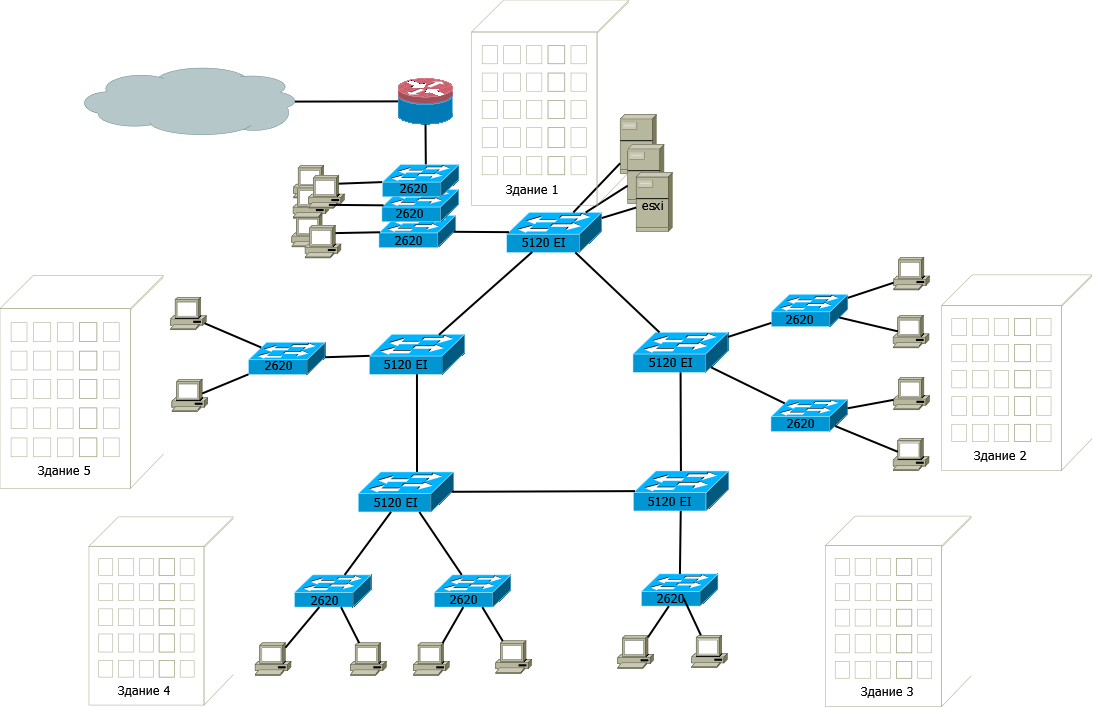 Serivan Posted December 29, 2015 Posted December 29, 2015 (edited) Здравствуйте уважаемые! Очень нужна ваша помощь, вот уже неделю ломаю голову. В маршрутизации и коммутации делаю первые шаги. До этого на GNS3 с образами циско вроде всё получалось, а в реальной ситуации с HP - не выходит. Помогите. Есть сеть предприятия построенная на множестве мелко-портовых и не управляемых свитчей. Для модернизации закупили HP 2620(доступ) и HP 5120(распределение). Перед монтированием этого всего появилась идея использовать виланы. Наша сеть имеет 23 маску и я её планирую разбить на на 16 сетей с маской 27. План IP-адресов составил. Задача усложняется тем, что сеть соединяет 5 зданий и некоторые виланы разнесены по двум-трем зданиям. Перед монтажом этого всего решил настроить свитчи согласно плану, но у меня ничего не выходит. Пробовал настроить такую схему для хостов из одного вилана - хост<<>>(порт доступа)свитч2620(trunk)<<>>(trunk)свитч5120(trunk)<<>>(trunk)свитч5120(trunk)<<>>vSwitch(esxi)<<>>хост - каждый хост пингует шлюз, значит пакеты через три коммутатора (два в случае виртуального хоста) ходят. Однако друг друга они(хосты) не пингуют. Подскажите, что я делаю не так? И реально ли на данном оборудовании реализовать VLAN? Хочется, чтобы вилан с серверами и интернетом, а также вилан с принтерами были доступны всем, в то же время остальные виланы должны быть изолированы между собой, ну и конечно-же управляющий вилан для коммутаторов. Для серверов и шлюза планирую использовать Native VLAN. Как всё это правильно сделать? То есть как настроить 5120? Один должен быть корневым и маршрутизировать виланы, а остальные должны быть транзитными. Всё вроде понятно, но не работает. Включал GVRP - не помогает(может снова что-то делаю не так). P.S. Между НР 5120 будет оптоволокно, на каждом этаже будет НР 2620. Адресация 10.10.10.0 /27 из рисунка мной использовалась для теста (делал на рабочей сети 192.168.216.0 /23). Edited December 29, 2015 by Serivan Вставить ник Quote