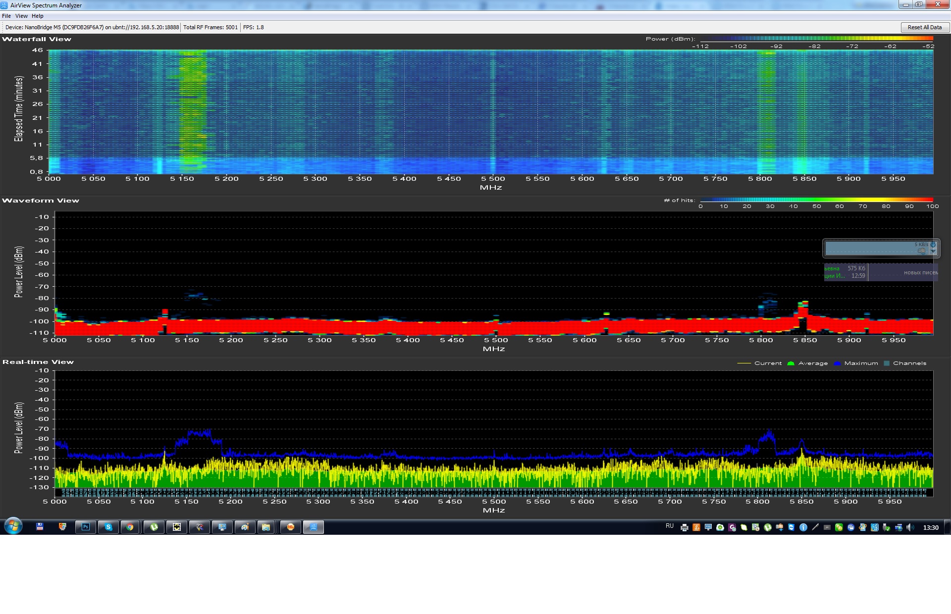 ramshik Posted February 2, 2016 Author Posted February 2, 2016 А вот мощность чуть выше можно до -60. А вот почему скорость отсылки упала при таких показателях до 20 мб это уже реально непонятно. На счет ширины канала ваше дело можете и 40 оставить, просто в сиплексе и на 30мгц вы примерно 90 прокачаете. Попробуйте ради интереса уйти на 5900+ частоту, но где чисто конечно. Посмотрел что и кто в округе после 5900+ все свободно. Делаем смену частоты и шага. Точка доступа Станция Вот результат Вставить ник Quote