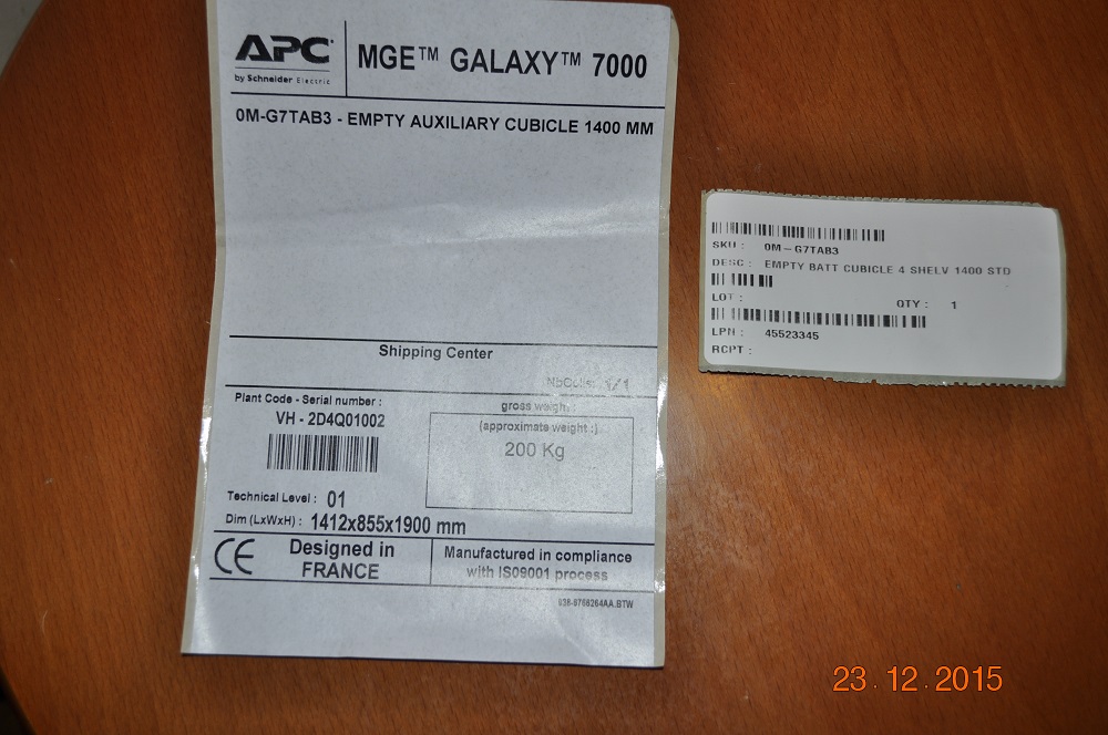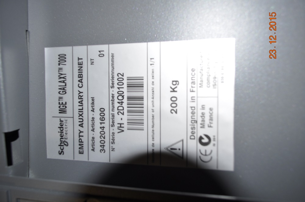 FIRSOFF Posted February 4, 2016 Posted February 4, 2016 Продам новый в заводской упаковке шкаф батарейный пустой для MGE Galaxy 7000 APC Schneider Electric EMPTY BATT CUBICLE 4 SHELV 1400MM артикул 0M-G7TAB3. Цена – 99000 руб. Геннадий 8-925-048-16-90 arhyvuce@mail.ru Вставить ник Quote