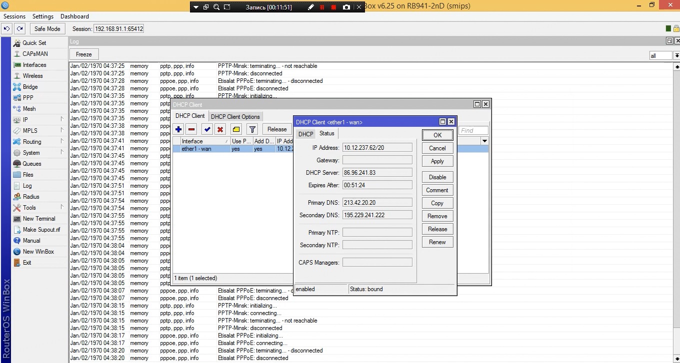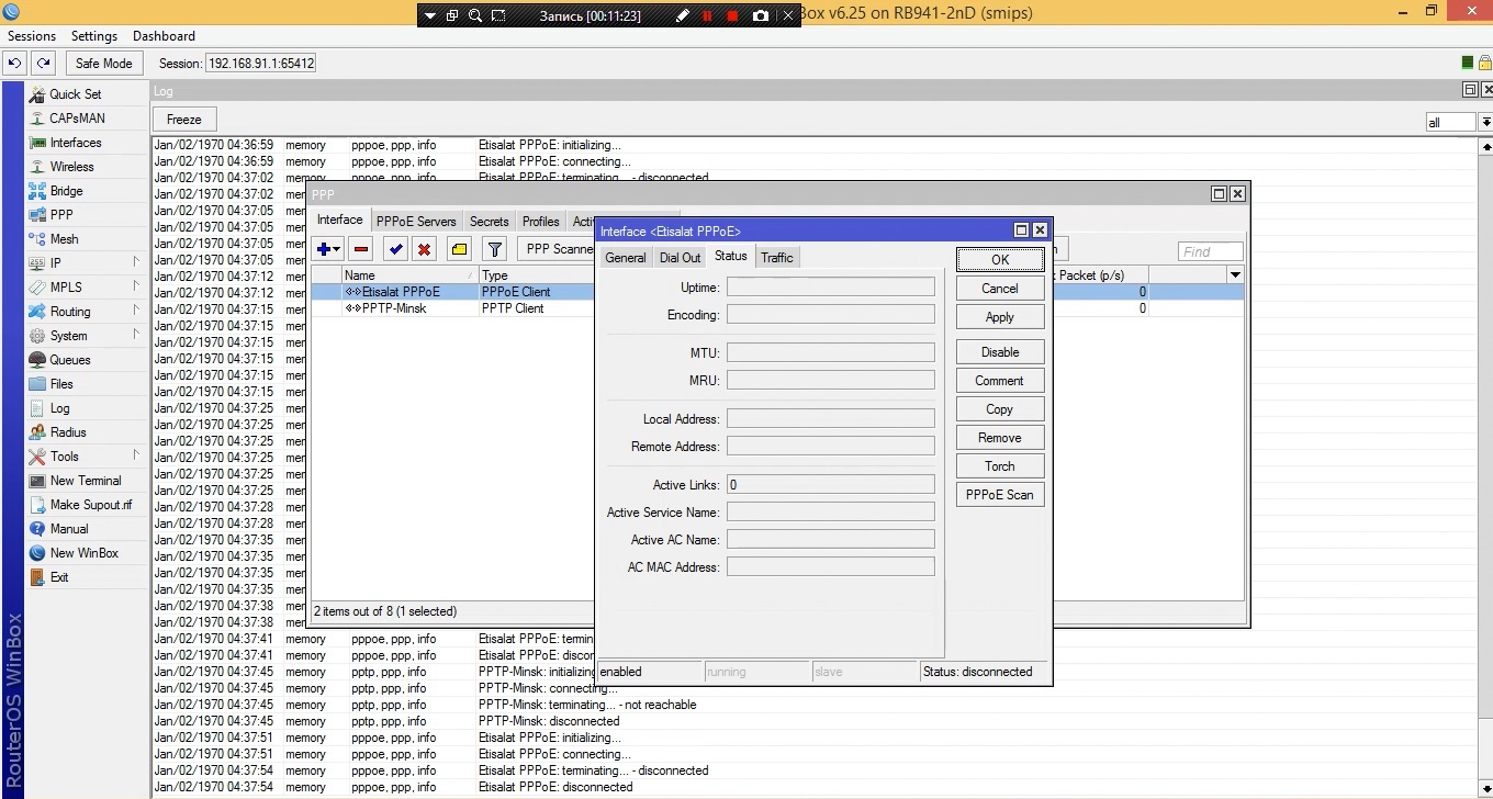 Meow Posted February 24, 2016 Вы решите что вам требуется. Если оператор предоставляет доступ по технологии PPPoE, то ничего более для получения интернета не требуется. В теории оно так, но сессия не поднимается, и всё что у меня есть - это циклические сообщения в логах: Etisalt PPPoE: initializing... Etisalt PPPoE: connecting... Etisalt PPPoE: terminating...-disconnected Etisalt PPPoE: disconnected Часто провайдеры дают доступ в серую сеть - локалку, что бы не гнать трафик через PPPoE концентраторы, провайдер раздает еще и IP автоматом, что бы клиенты имели доступ в локалку без передачи данных через PPPoE. Так называемый дуал ассесс. Поэтому в вашей картинке с другого роутера такая галочка есть. Однако это не значит, что нужно делать то же самое по аналогии с ним на микротике. Изначально DHCP-клиента на микротике не было, результат аналогичный. Поскольку результата не было, я решил в точности повторить настройки исходного роутера (включить в довесок DHCP Client), изменений нет. Но хотелось бы разобраться, почему не поднимается сессия с провайдером, в чём проблема. Share this post Link to post Share on other sites More sharing options...