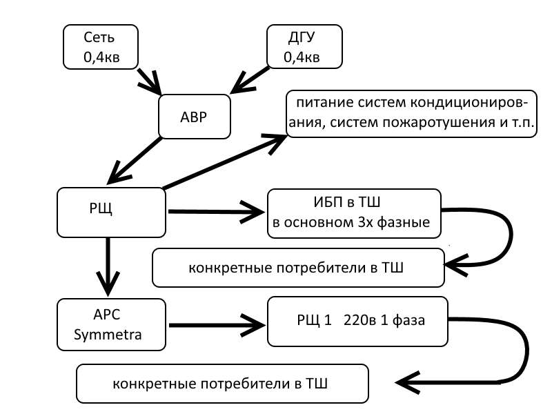 zoro Posted February 24, 2016 Posted February 24, 2016 Тема очень кстати. Как раз решил более серьёзно озаботиться вопросами питания в серверной. Самое офигенное было бы расписать как вообще должно быть от и до. Так получилось, что все с кем я общаюсь на эту тему не имеют представления как правильно организовать питание в серверной. Прямо на днях стала перезагружаться довольно дорогая ОЛТ, мы сидели в серверной настраивали кое что, тут лампочка притухла и ОЛТ ребутнулась, стойка запитывается от СНРровского инвертора. Самое забавное, что если просто выключить свет, то ничего не перезагружается. Для начала определится что питать будете :) Ну и вообще ребята надо было изначально обращаться интеграторам либо смотреть опыт других Крупных провайдеров... (дом.ру не все смотрите :) был в Липецке у вас у этого провайдера, как не странно у вас больше фрештел правильно построил- но маркетинг подвел и убил полностью) Для начала посмотреть нормативную документацию по питанию узлов связи- по идее у вас должен был быть проект с прошедшей экспертизой, и вы его показываете при сдаче узла в роскомнадзор... там должен быть том ЭС/ЭМ ЭГ - молниезащзита и заземление ЭС - электроснабжение (от ТП до ВРУ) ЭМ - электрооборудование (компьютеры,электрические розетки, насосы, двигатели и т.п.) ("М" - потому что Монтаж) ЭО - электроосвещение (внутреннее) Обычно разделы по внутрянке объединяют в одном альбоме (ЭМ,ЭГ) - я называю такой альбом ЭМ. том ЭС всегда делают отдельным альбомом так как там согласование с электроснабжающей организации... Согласно правил центральный Узел обычно относят к потребителю: "Первая категория надежности электроснабжения"... Питание от двух вводов(желательно от двух подстанций) Далее стоят два узла учета, и две группы защиты от перенапряжения, далее два АВР(потребители телеком, и потребители офис), далее я обычно ставлю хороший стабилизатор трехфазный, потом АВР с генератором... Правильный потребитель в телекоме питается не от 220в, а от -48в... Да да ОЛТ, роутеры, инверторы(в 220в для питания серверного оборудования), и нормальные шасси серверов питаются от постоянки, питают от -48в сажают два плеча на две разные стойки выпрямителей... Выпрямители работают с батареями в буфере минимум 150Ач максимум- надо смотреть считать... Выпрямители в основном трехфазные, автоматы три штуки в основном однофазные по одному на фазу... Если есть серверное однофазное оборудование - то ставят нормальный ИБП например PW9155-15 ИБП 15кВт на входе трехфазное 380в, на выходе одна фаза 220в... Есть опыт применения ТСТ-О 25 как сказать Говно не говно но попахивает... Короче надо пересматривать все оборудование и смотреть вводы... Далее считать думать, считать... Вставить ник Quote