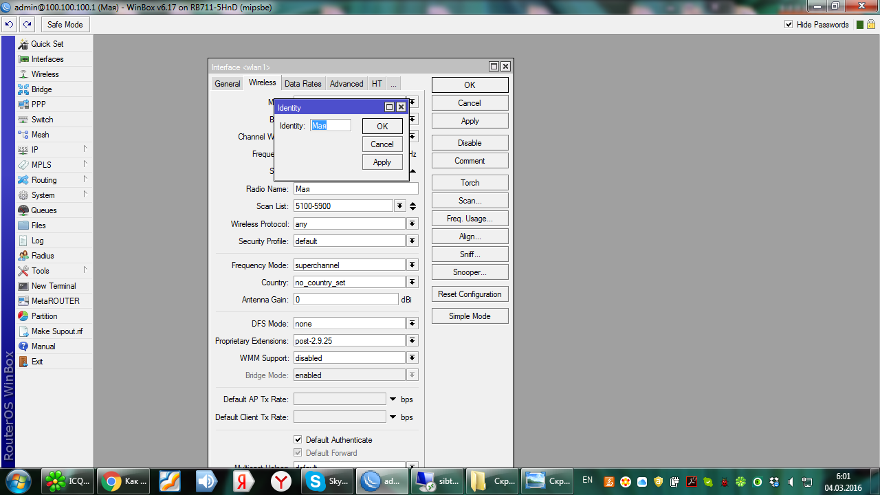 Saab95 Posted March 4, 2016 Posted March 4, 2016 Ну вообще русские буквы лучше там не использовать, подписывается RadioName и имя устройства вверху, что бы в списке соседей смотреть кто есть кто. Добавить их в Access list и дать там Comment При любом изменении списка будет передергиваться интерфейс, а так же при замене устройства у абонента тоже придется менять привязку - не удобно. Вставить ник Quote