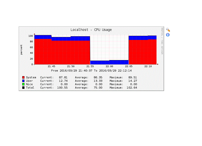 st_re Posted March 29, 2016 Posted March 29, 2016 ОС какая ? там с некоторой верятностью не %% а тики. и их может быть много больше 100 и даже 1000 в зависимости от проца(процов). А в темплейте скорее всего забито 100 как максимальное значение. потюнить RRD прописав (rrd tune) туда макс >> 100 (или поправить дата темплейт и снести RRD, при создании RRD он возьмет макс из темплейта. ) Вставить ник Quote