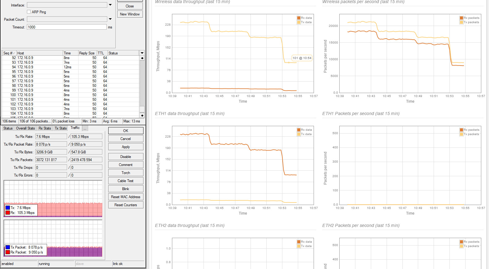 xabarov Posted July 28, 2016 Author Posted July 28, 2016 А если гнать тест не через радио, а по прямому шнурку - та же проблема? Подключили напрямую по кабелю, проблема почти такая же - в симплексе почти гигабит, в дуплексе перекос 900/30 мбит. Если делать два встречных симплекса, то преобладает тот, который запущен первым. Есть еще какие-нибудь варианты? Думал, что самое сложное - найти время и смонтировать железки, а на самом деле самое сложное - измерения :)