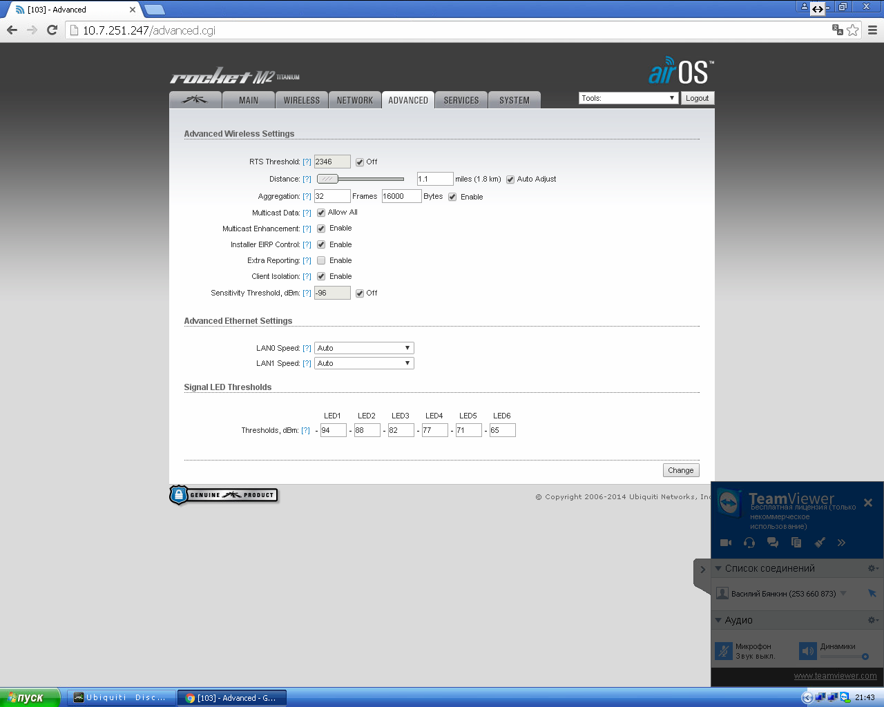 dronis3 Posted March 20, 2016 Posted March 20, 2016 (edited) Галочка не стоит на модуляции auto и когда у одного из клиентов падает модуляцией меньше MSC12, то качество ухудшается, а если выставить auto то модуляция понизится без ухудшения качества. Edited March 20, 2016 by dronis3 Вставить ник Quote