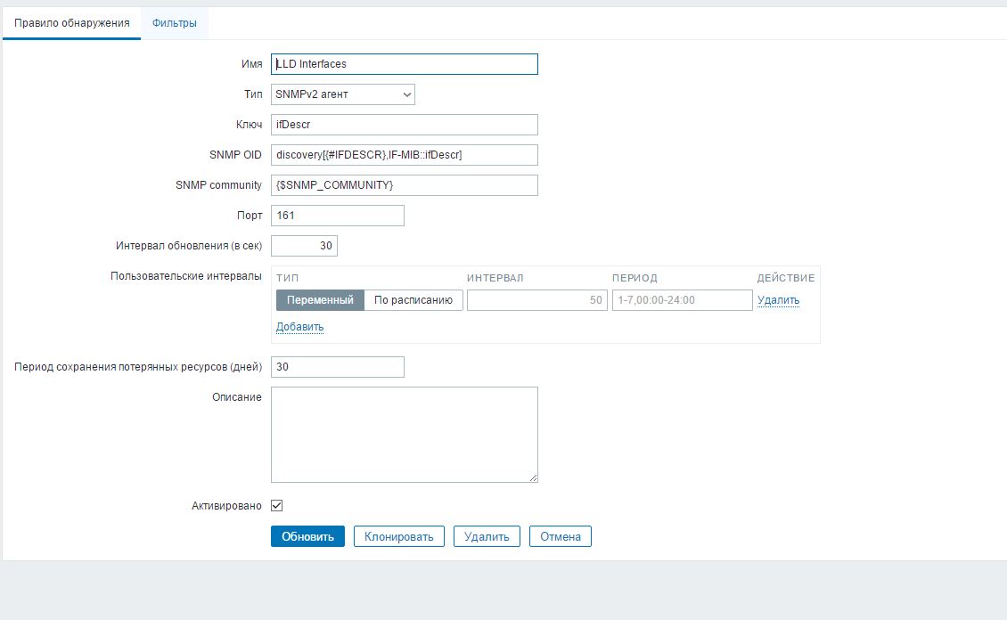 g3fox Posted March 23, 2016 Posted March 23, 2016 Пример. Обнаружение: discovery[{#IFDESCR}, ifDescr, {#IFALIAS}, IfAlias, {#IFADMSTATUS}, ifAdminStatus, {#IFNAME}, IfName] фильтры: 1. {#IFADMSTATUS} =~ 1 2. {#IFALIAS} =~ (.*zbxmon.*) 3. {#IFDESCR} =~ ([Pp]ort[ ]*[0-9]+|GigabitEthernet|TenGigabitEthernet|Port-channe|Vlan[0-9]+) пример прототипа: Имя ifInDiscards.{#IFNAME} ключ ifInDiscards.["{#SNMPINDEX}"] OID ifInDiscards.{#SNMPINDEX} Всё. Вставить ник Quote