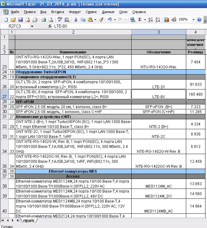 sinpain Posted March 26, 2016 Posted March 26, 2016 Продается: 1. OLT LTE-8X, 8 портов SFP-xPON, 4 комбопорта 10/100/1000, 2 порта SFP+(10G), встроенный коммутатор L2+, RSSI - 1 шт. 2. Модуль Eltex SFP xPON 2,5 GE 20 км, 1 волокно (B+ class) - 5 шт. Официальный прайс на оборудование во вложении. Так как оборудование б/у готов отдать с хорошей скидкой. Плюс в подарок отдам 2 приставки Eltex TurboGEPON NTE-2 Вопросы и предложения в личку. Вставить ник Quote