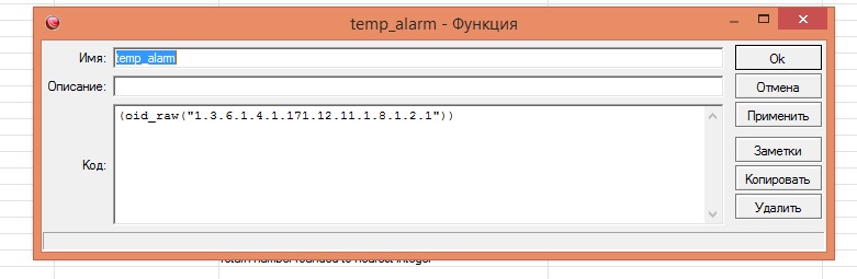 Victor Pestov Posted November 30, 2016 Posted November 30, 2016 Три дня бьюсь- не могу подружить ERD-3S 62:82 Firmware 1.6 и The Dude 4.0 beta 3.. Остальное работает ок! И Герда подключилась работает ОК. И в комстроке получаю температуру встроенного датчика во так: SnmpGet.exe -r:192.168.1.222 -t:10 -c:"public" -o:.1.3.6.1.4.1.40418.2.4.4.1 OID=.1.3.6.1.4.1.40418.2.4.4.1.0 Type=Integer Value=26 (SnmpGet v1.01 - Copyright © 2009 SnmpSoft Company) Инструкцию эту http://shop.nag.ru/article/nastrojka-zaprosa-parametrov-s-ustrojstv-snr-erd-po-protokolu-snmp-v-programme-dude-versiya-4 я не просто прочел- наизусть выучил, но не получается по инструкции.. Мне не подходит этот синтаксис в хелпе?- в строке «Код» вписать OID запрашиваемого параметра (oid_raw(«1.3.6.1.4.1.40418.2.2.4.1»)) Ведь если его весь заменить, на пару цифр, напр. "25", то график появляется! То ли файл SNR-ERD-3S.mib надо в Dude как-то прописать?Заработало.. правильный OID (oid_raw("1.3.6.1.4.1.40418.2.4.4.1.0", 5, 5, "192.168.1.222", "erd")) я получил от устройства силами Dude, воспользовавшись, по правой клавише мыши, встроенным инструментом SNMPWalk (среди "пинг;трасерт и т п") и далее в обнаруженных SNMP каналах, выбрать нужный и "создать источник данных" (он появится в Charts) или можно маяк- "зонд" создать, подобный пингу. picture Команда разработчиков SNR благодарит вас за описание более правильного метода. Добавим ее в инструкцию. Вашу проблему можно было решить, прописав (oid_raw(«1.3.6.1.4.1.40418.2.2.4.1») "руками" вместо копи-паста (при копи-пасте копируются некорректные символы) Вставить ник Quote