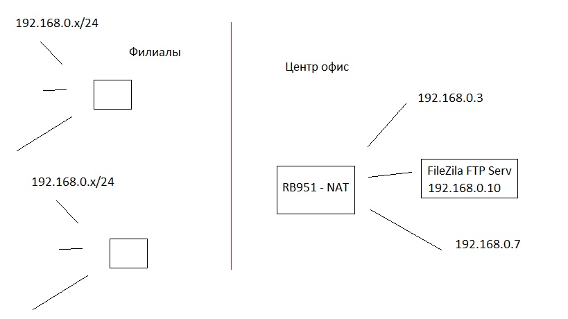 dovgancorp Posted April 21, 2016 Posted April 21, 2016 (edited) Здравствуйте, друзья, снова прошу помощи. На этот раз вопрос по FTP. Есть ПК "сервер", стоит за NAT'ом Mikrotik 951 (192.168.0.10) на нём поднят Fillezila ftp server для обмена специализированными файлами между филиалами. Изначально файлы гуляют внутри локалки (формируються на ПК пользователей и отправляютса с них батниками типа: open 192.168.0.10 User1 12345 prompt cd OFFICE lcd \\k2\mail\subdiv\office\out mput *.esc bye Затем филиалы, которые находятса в других местах, под другими рутерами и т.д., забирают эти файлики посредством конекта к FileZila такими же батниками, только с внешним ip. Обмен прекрасно ходит, когда включено правило на Микротике (оно же было на старом рутере Netgear jwnr2000) /ip firewall nat add chain=dstnat action=dst-nat to-addresses=192.168.0.10 to-ports=21 protocol=tcp dst-port=21 Однако есть пользователи, которые получают "почту" из написанных поставщиками программок по фтп, т.е. программки, установленные на одном из ПК у пользователя за Микротиком, цепляютса на внешний ФТП поставщика по его ip адресу и 21 порту, соединение с этих программ не проходит. Однако если на микротике деактивировать вышеуказанное правило - всё цепляетса, но перестает работать обмен между филиалами. Попробовал сделать правила scr-nat с конкретной машины пользователя 192.168.0.59 на ip адрес ftp-сервера поставщика. Не помогло... При этом в других филиалах тоже есть такие программки, там они прекрасно подключаютса к серверам поставщиков и тянут "почту" (файлы с поставками) Edited April 21, 2016 by dovgancorp Вставить ник Quote