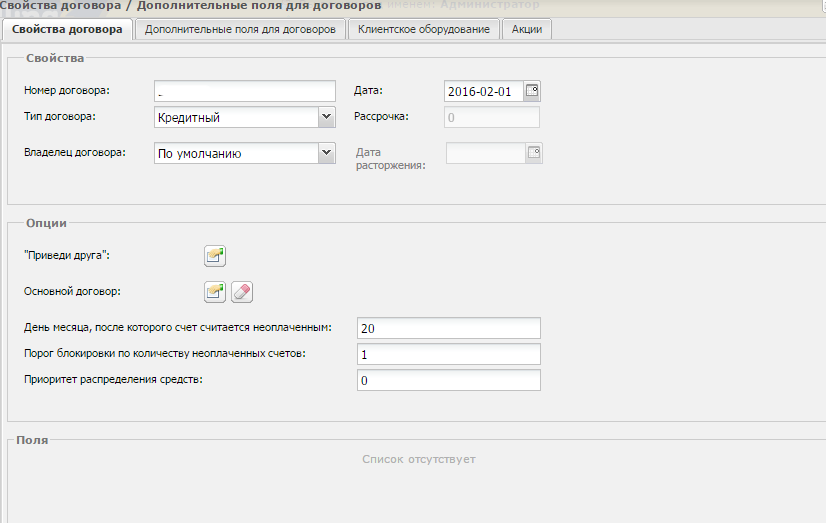 tokone Posted April 27, 2016 Posted April 27, 2016 Добрый день. Решил запустить тарификацию телефонии через кредитную схему по постоплате, для эмуляции создал: 1). Кредитный договор <> 1.png (день месяца, после которого счет считается неоплаченным - 20, порог блокировки по количеству неоплаченных счетов - 1); 2). Тариф с постоплатой со списанием ежемесячно <> 2.png; 3). Создал учетку, привязал ее к тарифу и договору, а так же включил ее задним числом 01.02.2016 <> 3.png и 3.1.png, чтобы увидеть как работает схема уже сейчас. 4). Сгенерировал через печатные формы "Счет кредитный" <> 4.png, на период 02.2016 от 01.03.2016 <> 5.png. 5). Закрыл период - март 2016 <> 6.png Предполагал что учетная запись имея два списания за 2 месяца и 1 неоплаченный счет, т.к. дата выставления его 01.03.2016, а уже 27.04.2016 уйдет по условиям кредитного договора, а именно порог блокировки по количеству неоплаченных счетов = 1, в блокировку, но данной процедуры не происходит. Вроде бы все условии учел: Счет считается неоплаченным, если: ❼ находится в закрытом периоде; ❼ прошло более дней с начала периода следующего за периодом выставления счета, чем определено параметром «День месяца, после которого счет считается неоплаченным»; ❼ не покрыт платежами списания аренды за два месяца тоже произошли по 225 р., теперь на балансе -450 р. и по идеи неоплаченный счет, но блокировки так и не наступает, рестартил ядро, не помогает, перечитал доки несколько раз, не могу понять чего не хватает. Мб у меня что не так с ядром LANBilling 2.0 Core Server Build: 18.0 (Mar 10 2016 15:33:10), rev #334e8b10. Перевожу на смешанный тип договора, блокировка наступает, иногда не сразу, но после рестарта ядра точно, значит что-то не так с выставленным счетом, только что не пойму, по срокам он уже должен быть неоплаченным. Ранее использовал только авансовые типы договоров для радиуса и нетфлоу, с ними проблем не было. Поделитесь опытом, кто реализовывал схемы с постоплатой