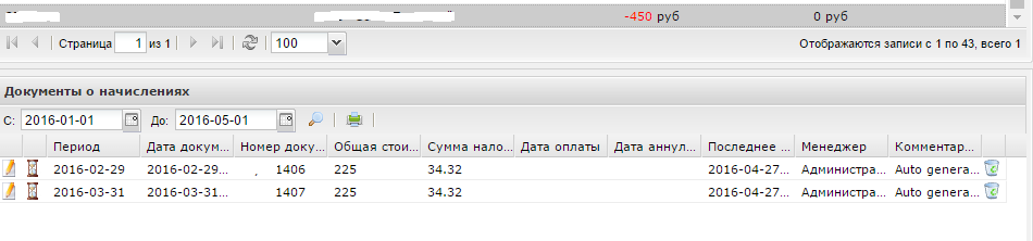 Domingo Posted April 27, 2016 Posted April 27, 2016 не, это генерация документа, который выставляется через шаблон как на 4ом скрине (если поставить автомат, то будет формировать именно его), у меня акты и счет-фактуры автоматом формируются по такому типу в начале месяц для предоплаты, только без оплаты самого документа. Не хватало документа по начислению, видимо по документации "счет" это и есть документ начисления, только об этом как-то не сказано Все верно блокировка по неоплате счета идет по документам о начислениях, которые формируются только в ручную. А печатные документы на эту блокировку никакого влияния не оказывают. Из-за этой блокировки приходится использовать систему финансовой отчетности. Сделано очень не удобно.