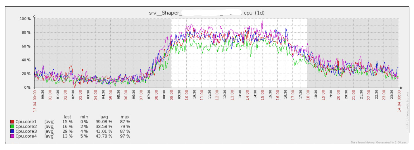 shuu01 Posted April 29, 2016 Posted April 29, 2016 (edited) Есть вопрос по сабжу. Стоит четырехядерный intel 2400 Mhz, 1Gb пямяти, 6.25 routeros. Занимается только шейпингом в queue simple. Очереди организованы следующим образом. Общая очередь incoming, которая служит parent для всех остальных, и куча подочередей для каждого юзера отдельно. Эта балалайка стоит для нарезания очередей пользователям с белыми адресами. Конфиг: /interface ethernet set [ find default-name=ether2 ] comment=exter name=ether1 speed=1Gbps set [ find default-name=ether3 ] comment=interlan name=ether2 speed=1Gbps set [ find default-name=ether1 ] disabled=yes name=ether3 speed=1Gbps /interface vlan add interface=ether1 l2mtu=9010 name=vlan2_1 vlan-id=2 add interface=ether2 l2mtu=9010 name=vlan2_2 vlan-id=2 add interface=ether1 l2mtu=9010 name=vlan3_1 vlan-id=3 add interface=ether2 l2mtu=9010 name=vlan3_2 vlan-id=3 /ip traffic-flow set cache-entries=512k enabled=yes /ip traffic-flow target add address=10.10.2.39:9996 version=5 /interface bridge port add bridge=bridge3 interface=vlan3_1 add bridge=bridge3 interface=vlan3_2 add bridge=bridge2 interface=vlan2_1 add bridge=bridge2 interface=vlan2_2 /interface bridge settings set use-ip-firewall=yes use-ip-firewall-for-vlan=yes /ip firewall connection tracking set enabled=no /ip address add address=10.10.2.40/24 interface=bridge2 network=10.10.2.0 /queue simple add comment=incoming max-limit=900M/900M name=incoming priority=1/1 queue=\ default_very_big/default_very_big target=\ 10.48.0.0/16,1.1.2.0/21,2.2.6.0/22 time=\ 0s-1d,sun,mon,tue,wed,thu,fri,sat total-priority=1 total-queue=\ default_very_big add max-limit=10240k/10240k name=16889 parent=incoming priority=2/2 queue=\ default_small/default_small target=\ 2.2.8.0/32,2.2.8.1/32,2.2.8.2/32,2.2.8.3/32 time=\ 0s-1d,sun,mon,tue,wed,thu,fri,sat total-priority=2 total-queue=default add max-limit=20480k/20480k name=14681 parent=incoming queue=\ default_small/default_small target=\ 1.1.4.112/32,1.1.4.113/32,1.1.4.114/32,1.1.4.115/32 time=\ 0s-1d,sun,mon,tue,wed,thu,fri,sat total-queue=default add max-limit=8192k/8192k name=15864 parent=incoming priority=2/2 queue=\ default_small/default_small target=1.1.7.10/32 time=\ 0s-1d,sun,mon,tue,wed,thu,fri,sat total-priority=2 total-queue=default ..... (1700 очередей в общем) /queue type set 0 pfifo-limit=100 set 1 pfifo-limit=65000 add kind=pfifo name=default_small pfifo-limit=200 add kind=pfifo name=default_very_big pfifo-limit=150000 В ЧНН нагрузка на проц 80%. Проблема вот в чем: любые ограничения до 20 мбит работают. Как только клиенту выставляешь 30 мбит max-limit, полоса до этого ограничения не дотягивает. Всем чем угодно, торрентами, iperf. Максимум показывает те же 20 мбит. Edited April 29, 2016 by shuu01 Вставить ник Quote