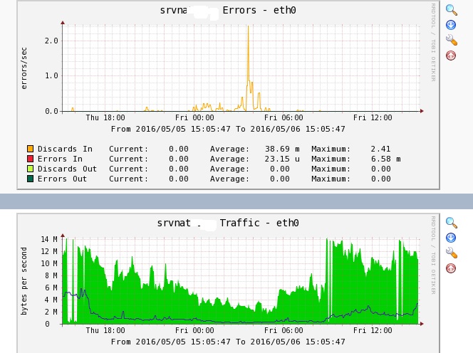 RG-45 Posted May 6, 2016 Новый узел , НАТ сервер провалы и обрывы ...но от клиентов жалоб нет , нагрузка не совсем большая . На данном интерфейсе (сторона вышестоящего магистрала ) ошибки и падения , тоже самое на абонентской стороне но нет ошибок . Что делалось, НАт настроен с учетом нагрузок, протюнили sysctl и нат таблицы в соответствии с прежними серверами . Сервер DL310 сетевушки встроенные гигабитные broacom (кажется ) дрова по умолчанию . Патчкорды менял на предмет ошибок . Ребят поскажите что может быть ...может кто сталкивался . Share this post Link to post Share on other sites More sharing options...