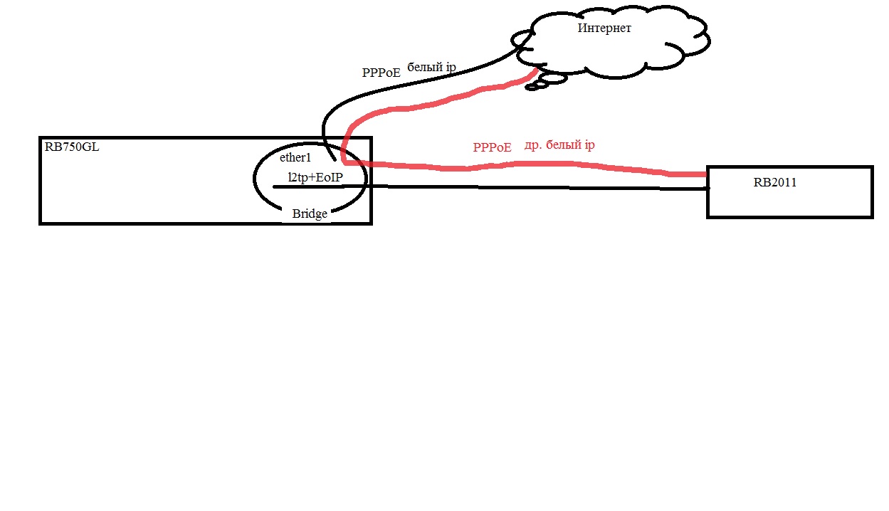 bumble-bee007 Posted May 14, 2016 Ситуация следующая: маршрутизатор mikrotik RB750GL, аплинк на первом порту, провайдер эр-телеком, соединение с провайдером по pppoe. RB750GL соединен с RB2011 при помощи l2tp тунеля+протокол EoIP. Тунель объединен с первым портом RB750GL в бридж (proxy-arp). Тунель нужен, чтобы на RB2011 инициировать клиентское PPPOE соединение с эр-телекомом (нужен белый эр-телекомовский ip адрес, а у них подключение возможно только через PPPOE). Периодически соединение падает (на обоих устройствах). В логе "pppoe terminating peer is not responding". И один раз была ошибка навроде "отправитель пакета совпадает с адресатом"(что-то в том роде), лог сохранить не удалось. Сейчас сделал сохранение лога на диск. Подскажите как исправить или альтернативный вариант. Share this post Link to post Share on other sites More sharing options...