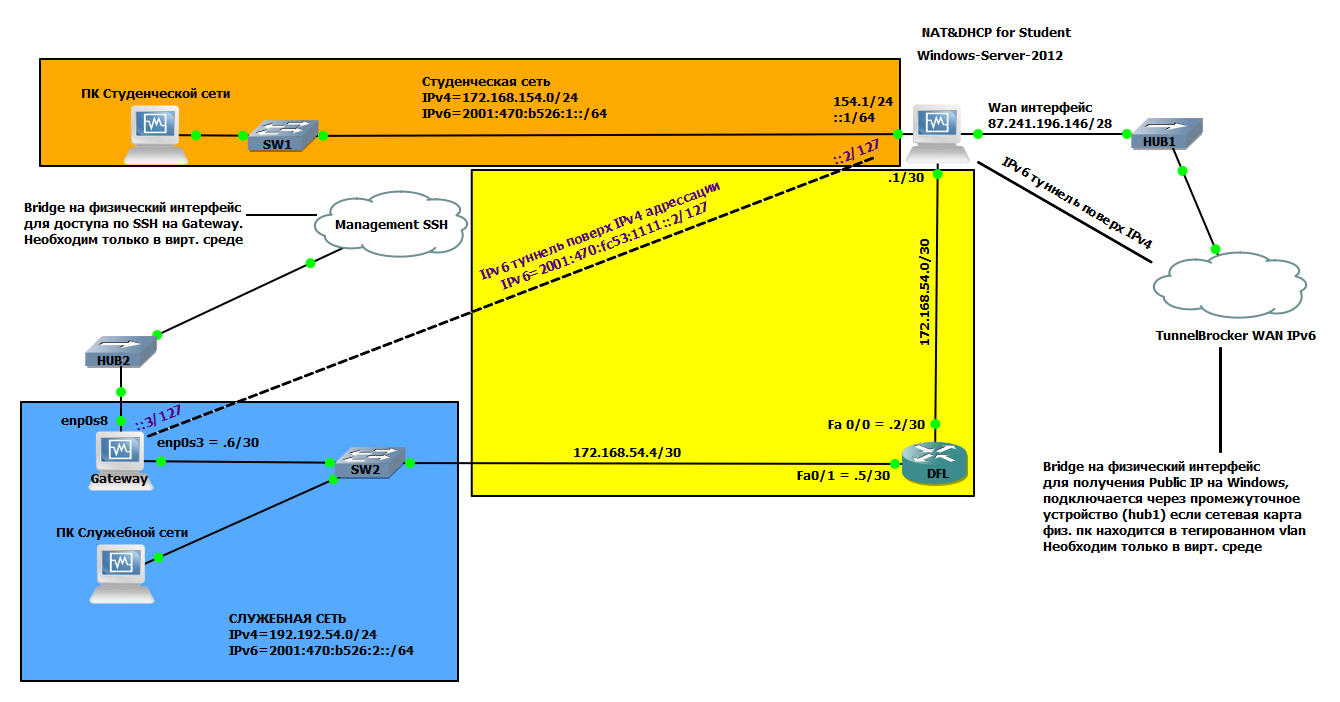 fractal Posted June 16, 2016 (edited) Пытаюсь настроить dhcp6 relay на ubuntu, перед этим выполнил настройку dhcp4 relay ubuntu, она работает, DHCP крутиться на windows server 2012. сделал так, создал isc-dhcp6-relay в /etc/default/ # Defaults for isc-dhcp6-relay initscript # sourced by /etc/init/isc-dhcp6-relay.conf # # This is a POSIX shell fragment # # What interfaces should the DHCP relay forward requests to? [color="#FFFF00"]тут интерфейс который смотрит на клиента UPPER_INTERFACES="enp0s3"[/color] # On what interfaces should the DHCP relay (dhrelay) serve DHCP requests? [color="#FFFF00"]тут у меня туннель ipv6 over ipv4[/color] LOWER_INTERFACES="win6to4" # Additional options that are passed to the DHCP relay daemon? OPTIONS="" создал /etc/init.d/isc-dhcp6-relay #!/bin/sh # # ### BEGIN INIT INFO # Provides: isc-dhcp6-relay # Required-Start: $remote_fs $network # Required-Stop: $remote_fs $network # Should-Start: $local_fs # Should-Stop: $local_fs # Default-Start: 2 3 4 5 # Default-Stop: 0 1 6 # Short-Description: DHCP relay # Description: Dynamic Host Configuration Protocol Relay ### END INIT INFO # It is not safe to start if we don't have a default configuration... if [ ! -f /etc/default/isc-dhcp6-relay ]; then echo "/etc/default/isc-dhcp6-relay does not exist! - Aborting..." echo "Run 'dpkg-reconfigure isc-dhcp6-relay' to fix the problem." exit 1 fi # Source init functions . /lib/lsb/init-functions # Read init script configuration (interfaces the daemon should listen on # and the DHCP server we should forward requests to.) [ -f /etc/default/isc-dhcp6-relay ] && . /etc/default/isc-dhcp6-relay # Build command line for interfaces (will be passed to dhrelay below.) IFCMD="" if test "$INTERFACES" != ""; then for I in $INTERFACES; do IFCMD=${IFCMD}"-i "${I}" " done fi DHCRELAYPID=/var/run/dhcrelay6.pid case "$1" in start) start-stop-daemon --start --quiet --pidfile $DHCRELAYPID \ --exec /usr/sbin/dhcrelay -- -q $OPTIONS $IFCMD $SERVERS ;; stop) start-stop-daemon --stop --quiet --pidfile $DHCRELAYPID ;; restart | force-reload) $0 stop sleep 2 $0 start ;; *) echo "Usage: /etc/init.d/isc-dhcp6-relay {start|stop|restart|force-reload}" exit 1 esac exit 0 при старте [....] Starting isc-dhcp6-relay (via systemctl): isc-dhcp6-relay.serviceFailed to start isc-dhcp6-relay.service: Unit isc-dhcp6-relay.service not found. failed! вот текущая топология в скрине Edited June 16, 2016 by fractal Share this post Link to post Share on other sites More sharing options...
