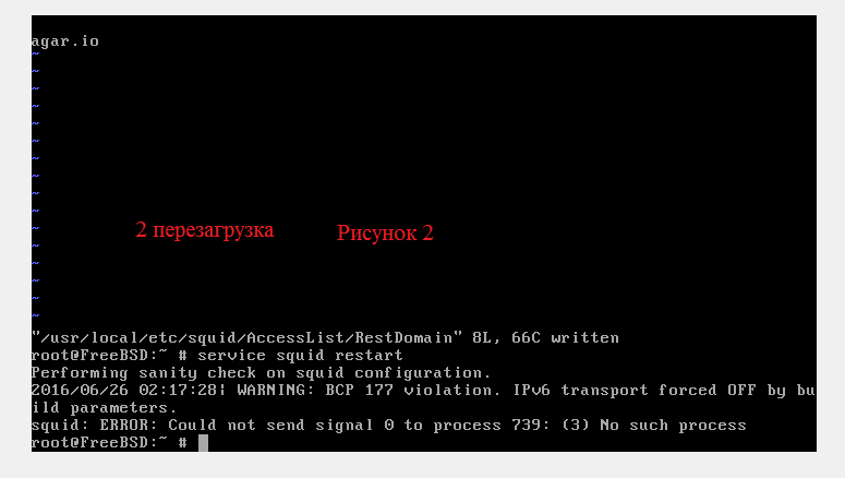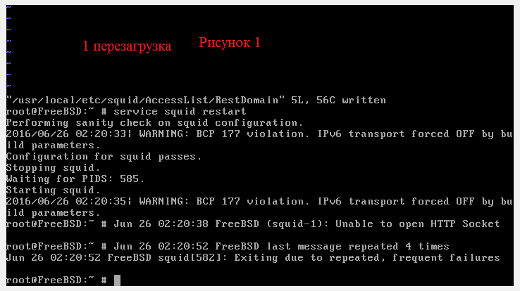 SHAH0009 Posted June 25, 2016 Здравствуйте Уважаемые пользователи форума. Я в unix новичок и вот с чем столкнулся. Есть машина FreeBSD 10.1 на ней squid. Редактирую правила squid. Перезапуская squid для того чтобы они переменились. Сначала перезапуск squid производится нормально. Система выдает следующее(рис.1) Потом если систему не перезагружать, снова отредактировать squid и перезапустить его система выдает следующее(рис.2) Чтобы squid снова запустился приходится перезагружать саму машину. Покажите пожалуйста каким образом осуществлять перезапуск чтобы squid перезапускался корректно после первого перезапуска? Заранее благодарен! :) Share this post Link to post Share on other sites More sharing options...