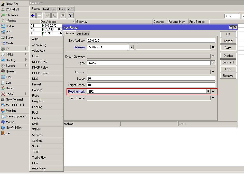 nkusnetsov Posted July 28, 2016 v0ster, в меню IP->Routes посмотрите как выглядит. Добавляете маршруты, указывая routing-mark="ISP2" - будет создаваться отдельная таблица с именем "ISP2". Вставить ник Quote Ответить с цитированием Share this post Link to post Share on other sites More sharing options...