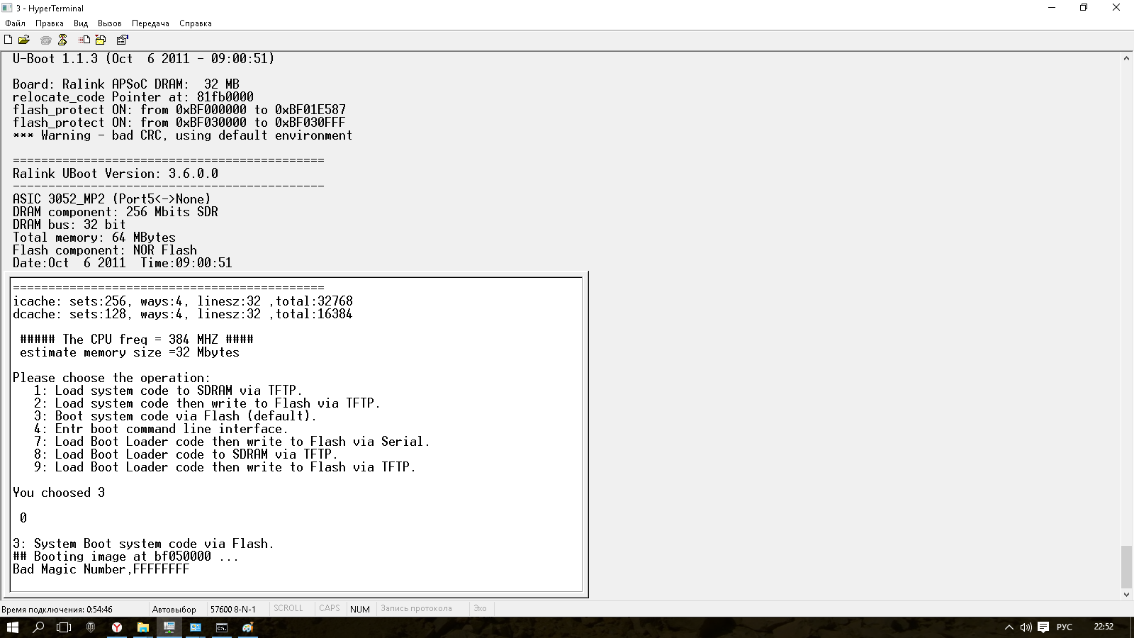 GeParDos Posted August 1, 2016 Posted August 1, 2016 Приветствую всех! Сразу к проблеме - значит принес мне друг роутер SNR-CPE-W4N который купил у парня за гроши так как парень попытался прошить его и убил, то-есть как убил, он включается, раздает по локалке интернет и все на этом дело кончается. Я первым делом попытался зайти по IP-адресу роутера, но получил ошибку в ответ, тогда решил через командную строку узнать основной шлюз так как это и был бы адрес роутера, но вот беда строка основной шлюз: пуста что в командной строке что в сведениях о сетевом подключении Ну думаю придется прошивать через консоль и шнурок вскрываю девайс подключаю шнурок запускаю терминал и бах получаю уопу полную уопу, роутер конечно включается и об этом говорит терминал, но вот только при включении он пытается установить дефолтные настройки и на этом виснет, и не реагирует на кнопку ресет, и нет возможности выбрать другой пункт меню вот и решил я обратится к вам за помощью, в сети много есть про 3: System Boot system code via Flash. ## Booting image at bf050000 ... Bad Magic Number,FFFFFFFF, но решений я так и не нашел у всех как то само собой перепрашивается и все тут. Помогите пожалуйста!!! Вставить ник Quote