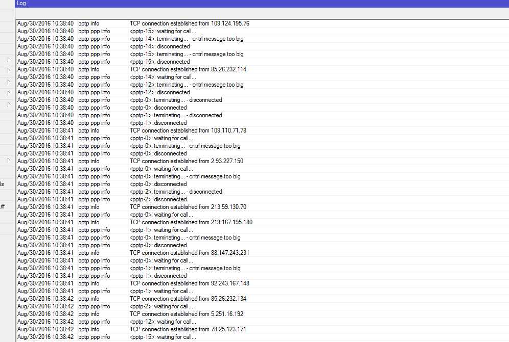 ReCom48 Posted August 31, 2016 Author Posted August 31, 2016 Кто-то пытается подключиться к впн серверу поднятому на микротике, закрывать порт фаерволом или не обращать внимание, если логин/пароль на впн не типа Admin/admin ну или чтото простое. VPN не использую на этой машине вообще, но этот стервец задрал проц на 100 процентов, я нашел провайдера чей IP написал в саппорт трафик идет вот осюда http://sevstar.net/ Вставить ник Quote