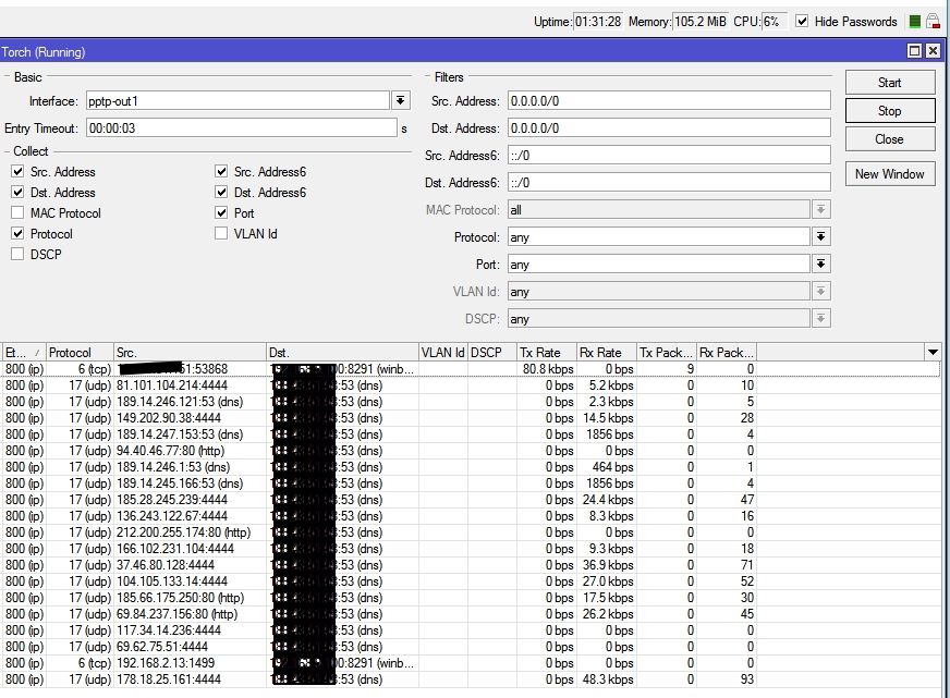 Adim Posted November 9, 2016 Posted November 9, 2016 (edited) чтоб не плодить спрошу тут... имеем микротик инет с белым ип, через его идет только видеонаблюдение на видео сервер облачный предистория...возрасла нагрузка на микротик до 80 процентов...в фаервол добавил правило на 53 порт полегчало намного...щяс нагрузка 1-6 процента вопрос что сделать с этими остатками что висят... p.s. под замалеванным dst. белый ип Edited November 9, 2016 by Adim Вставить ник Quote