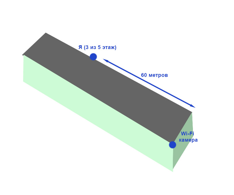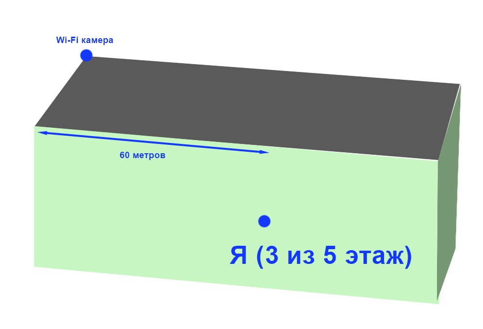 mxup Posted September 13, 2016 Здравствуйте, хочу повесит на угол дома ( обычная 5 этажная обычная хрущёвка с наклонной крышей) Wi-Fi камеру, которая будет писать автомобильную стоянку. Окна выходят на противоположную сторону дома, расстояние от окна до угла дома примерно 60 метров. Этаж у меня третий, всего 5. Стены бетонные. Роутер Keenetic Ultra II Камера китайская вот такая: https://ru.aliexpress.com/item/SunEyes-ONVIF-Mini-Wireless-IP-Camera-Outdoor-720P-Waterproof-IP66-Wifi-Network-1-0MP-HD-CCTV/1448349559.html Wireless:wifi 802.11b/g/n wireless Есть ещё адаптер Wi-Fi TP-LINK TL-WN7200ND (ver 1.2) Вопрос такой: если на балкон выставить TP-LINK TL-WN7200ND, добьёт ли до камеры? Если нет, то какое оборудование надо докупить (только чтобы дома стояло) для ого, чтобы сигнал нормально принимать с камеры (ну и передавать ей конечно) Схему расположения своего окна и желаемого расположения камеры прикрепил к вложению Вставить ник Quote Ответить с цитированием Share this post Link to post Share on other sites More sharing options...
