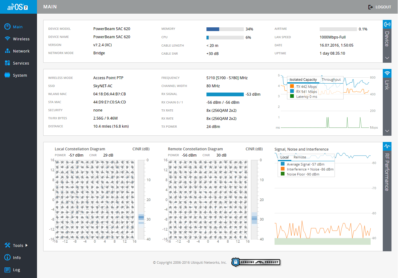 wifin00b Posted October 26, 2016 (edited) Выкинь этот АС куда подальше, не будет он работать. Вот как работает AF-5х на 17 км. С RD 30 получишь то же самое. так 250М меня устраивает... И что тут видно? Где tcp трафик? Edited October 26, 2016 by wifin00b Вставить ник Quote Ответить с цитированием Share this post Link to post Share on other sites More sharing options...