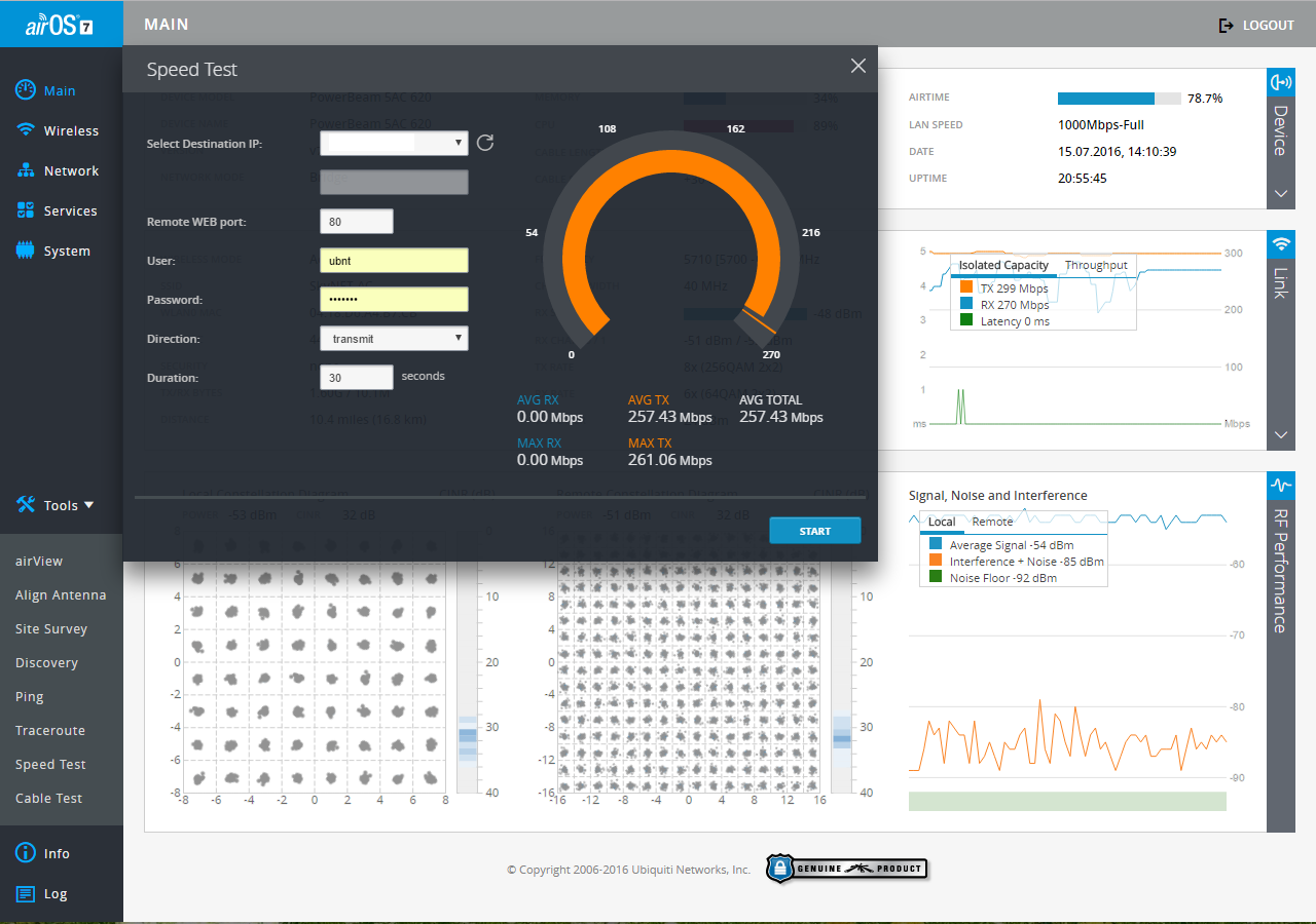 wifin00b Posted October 24, 2016 (edited) Здравствуйте, помогите пожалуйста разобраться, почему нет скорости на линке, эфир практически чист, растояние 16.6 км, до 180 мбит айперфом... Edited October 24, 2016 by wifin00b Вставить ник Quote Ответить с цитированием Share this post Link to post Share on other sites More sharing options...