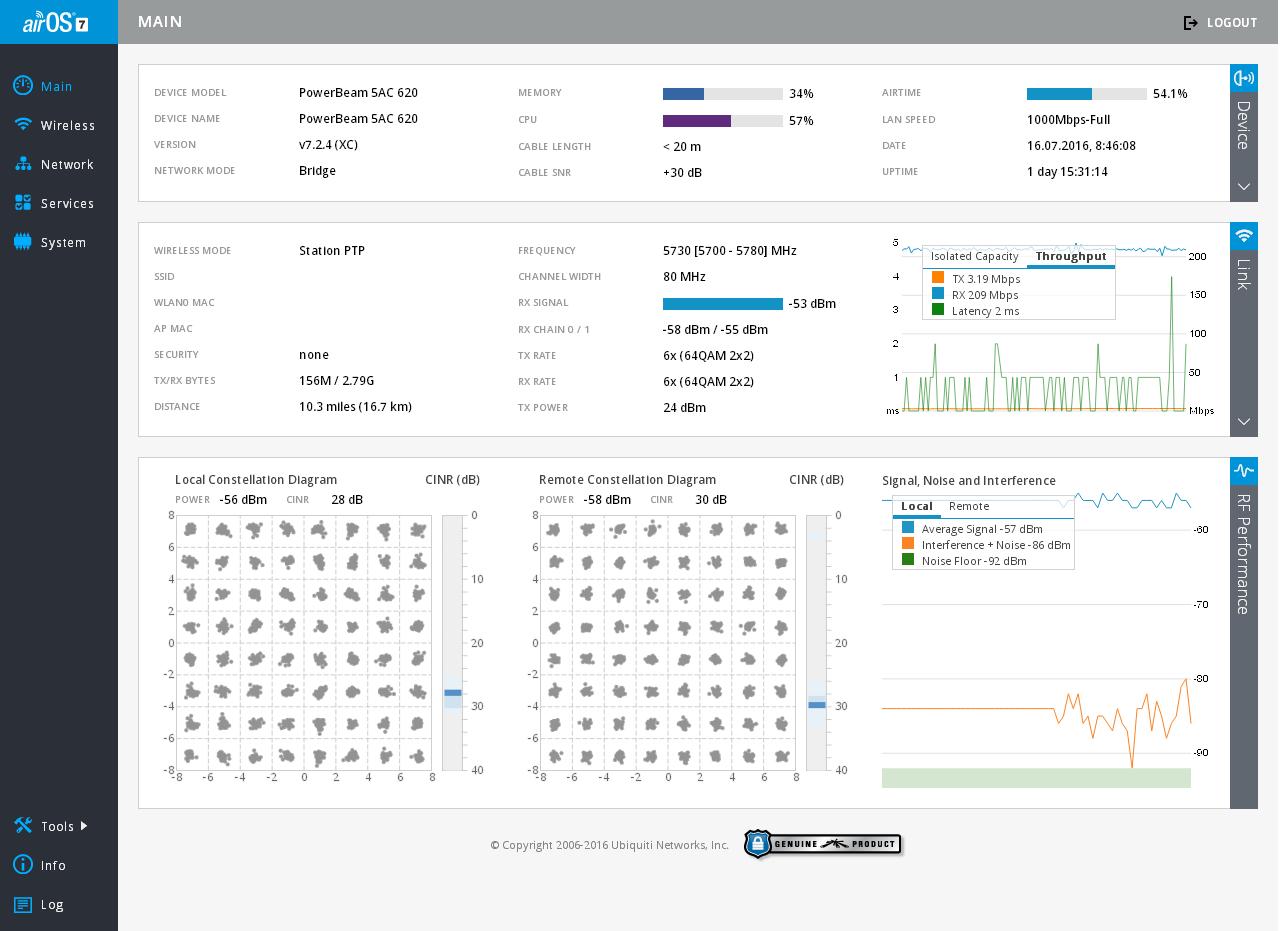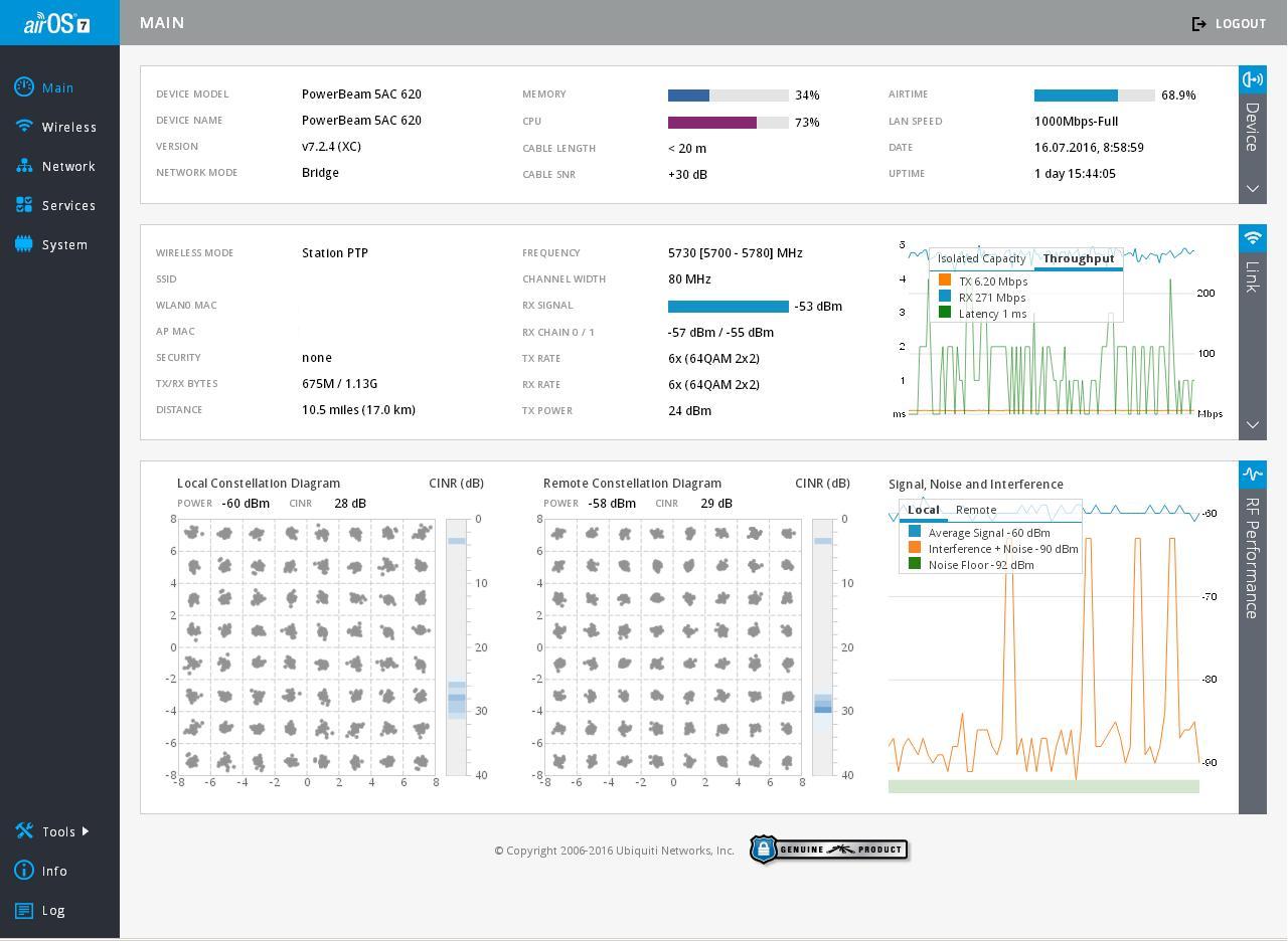slv700 Posted October 26, 2016 С утра 30 dbm, от чего может колебаться в течении суток? CINR - это отношение сигнала к помехе. Помеха плавает- значит плавает и CINR. сигнал у меня -52 - -53 Посмотрите Constellation diagram. Справа у вас interference+noise=-86 dBm, Average ( средний ) сигнал -57 дБm. Вот система и высчитывает CINR как Сигнал- (interference+noise). И главное, на самом первом скрине выше в правом нижнем углу у вас прыгает interference+noise даже ниже -70 дБм. Думаю у вас на удаленной строне рядом с PB 620 на соседних с ним частотах работает какое то другое устройство, которое при наличии трафика ( для него Upload) создает биму АС помехи. Причем для бима АС частотный разнос даже 100 Мгц бывает недостаточен ( зависит от территориального разноса и ориентации антенн). Уйдите в сторону на 500 Мгц, может полегчает. Вставить ник Quote Ответить с цитированием Share this post Link to post Share on other sites More sharing options...