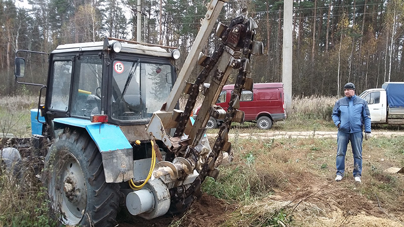 Bachaa Posted October 26, 2016 Сегодня довелось первый раз работать барой, хотя она в конторе уже второй год, но мне все никак не доставалась. Обходился простым ковшом. А вот сегодня меня осчастливили. И я погнал искать свою прошлогоднюю закладку грунтового кабеля, который не хватило время достроить. Оказывается довольно не просто отыскать что либо когда то закопанное, если нет пикета и какого - либо ориентира. Трава вырастает в полный рост и понять что либо очень трудно. Вобщем за час, полтора откапал я свою бухту Прошли трассоискателем, посмотрели где параллельные и поперечные коммуникации, почистили ножом трактора коридор и погнали Впечатление двоякое. На чистом грунте бежит довольно быстро. За минуту порядка 5-ти метров при глубине погружения 1- 1,2 метра. Но если попадается коряга, мусор или камни, то такие препятствия проще обходить простым ковшом. На цепи срабатывает предохранитель и приходится лесть переключать куда-то в редуктор. Не очень удобно. Мы за час по бывшей свалке срывали предохранитель раз 8 наверно. Но по чистой земле было все путем. По песчаной почве тяжеловато. Приходится закладывать кабель практически сразу за ножом, так как грунт сразу обваливается. Небольшой видос Вставить ник Quote Ответить с цитированием Share this post Link to post Share on other sites More sharing options...