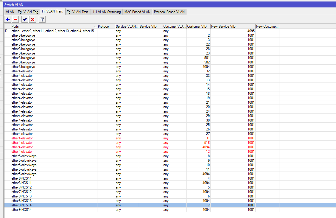 haverlinkfor Posted November 17, 2016 Posted November 17, 2016 Подскажите, кто настраивал CRS с использованием двойного тегирования, может встречались с проблемой. По настройке проблем нет, есть мануал на сайте http://wiki.mikrotik.com/wiki/Manual:CRS_examples#VLAN_Tunneling_.28Q-in-Q.29. Все работает, НО, только в кол-ве 15 vlan-id на порт. Начиная с 16го все в винбоксе подсвечиваются красным (т.е. не активными) и не работают. Вставить ник Quote