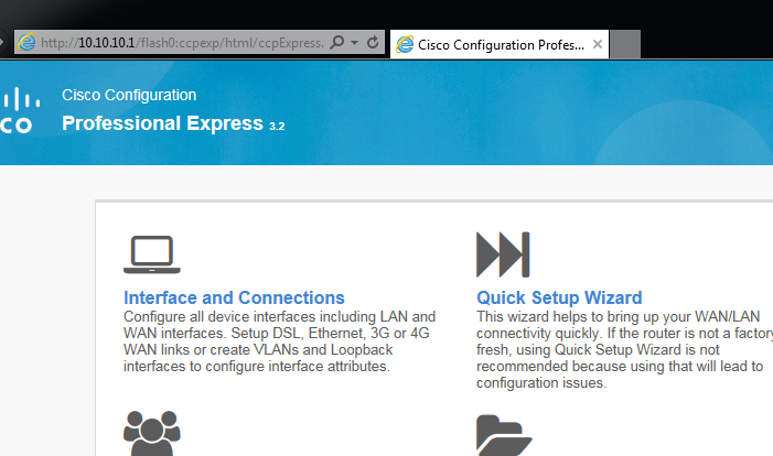 maxkst Posted January 18, 2017 Имеется девайс cisco 2911 в самой базовой конфигурации, из коробки. При попытке подключиться через браузер на HTTP выходит приглашение на логин/пароль и после успешной авторизации появляется главная страница с 10 кнопками Cisco Configuration Professional Express 3.2. Выглядит все многообещающе, но нажатия на любую кнопку открывают лишь пустую страницу. software 15.4(3)M3-universalk9. Других претензий от заказчика по девайсу нет... ip http server ip http access-class 23 ip http authentication local ip http secure-server ip http timeout-policy idle 60 life 86400 requests 10000 файлы явно есть, просмотр кода доступен для каждой страницы, но никаких ошибок. просто белый лист . Share this post Link to post Share on other sites More sharing options...