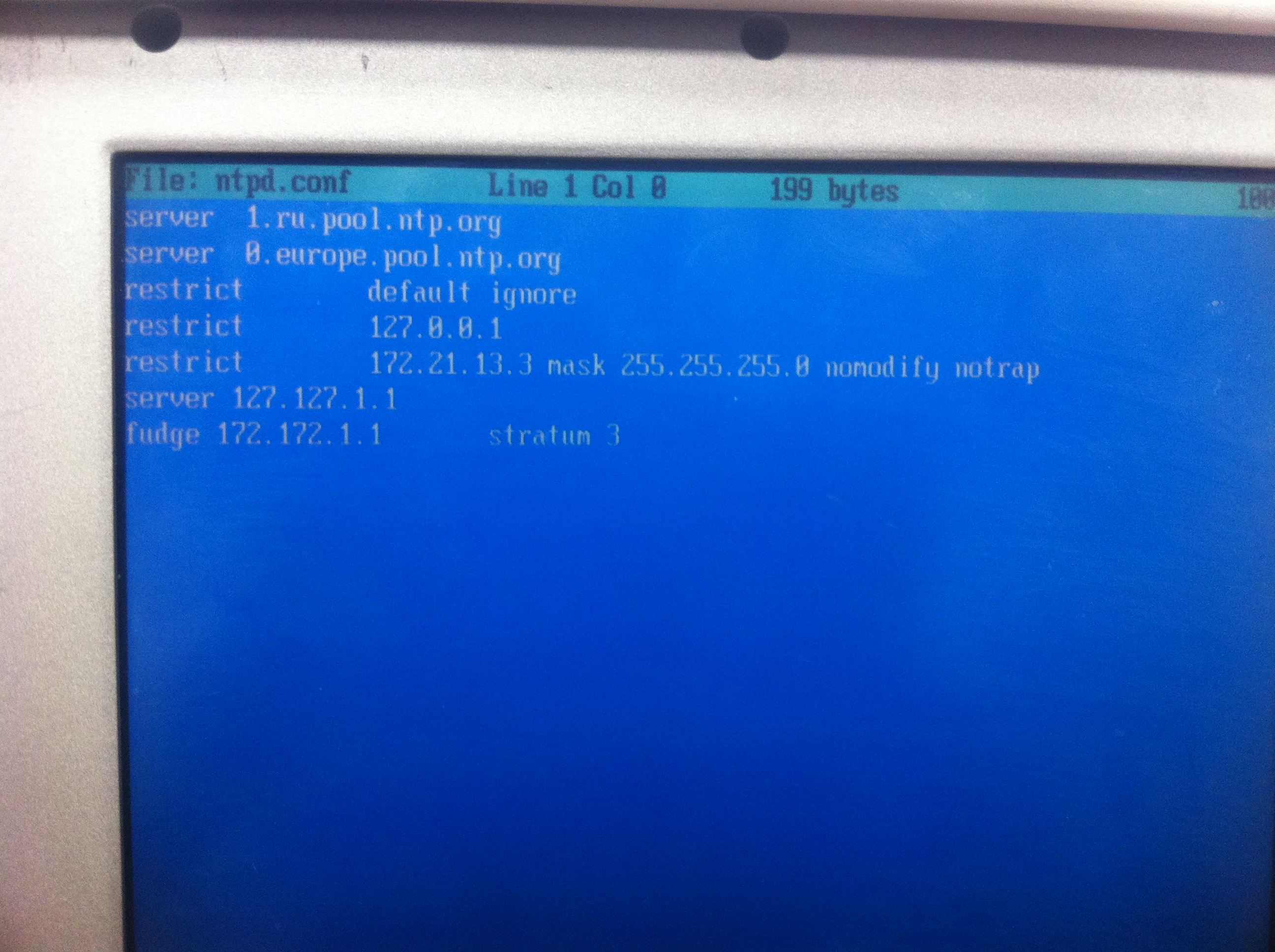 kamehck Posted January 27, 2017 Добрый день! На компе стоит altlinux 2.6.32 и стоит задача организовать синхронизацию времени с ip камер. Выхода в инет с компа и сети нет и не будет. В инете встречал темы, что если нет инета то и с локалки ничего не будет синхронизироваться. Так ли это? Рабочий конфиг ntpd.conf только когда прописаны строки server, на все остальные параметры ругаются. Фото конфига во вложении. Share this post Link to post Share on other sites More sharing options...
