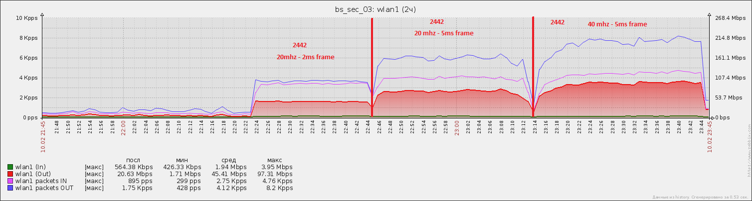 npokypop Posted February 11, 2017 BaseBox 2 не в металлическом корпусе, что мне не нравится из-за возможных помех соседней по мачте БС.На каком расстоянии от БС используете Lite 2 ?С РЧС проблем на 2.4 не возникало? до 2км Вот вчера делал тест максимальной скорости сектора На секторе в этот момент было 11 абонентов, на 3-х их них дал из ядра через BWTest tcp трафик Вот что по шуму Вставить ник Quote Ответить с цитированием Share this post Link to post Share on other sites More sharing options...